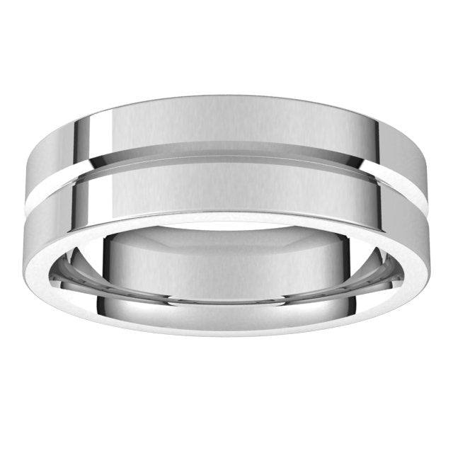 14K White 6 mm Grooved Comfort-Fit Flat Band Size 10