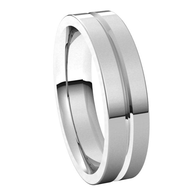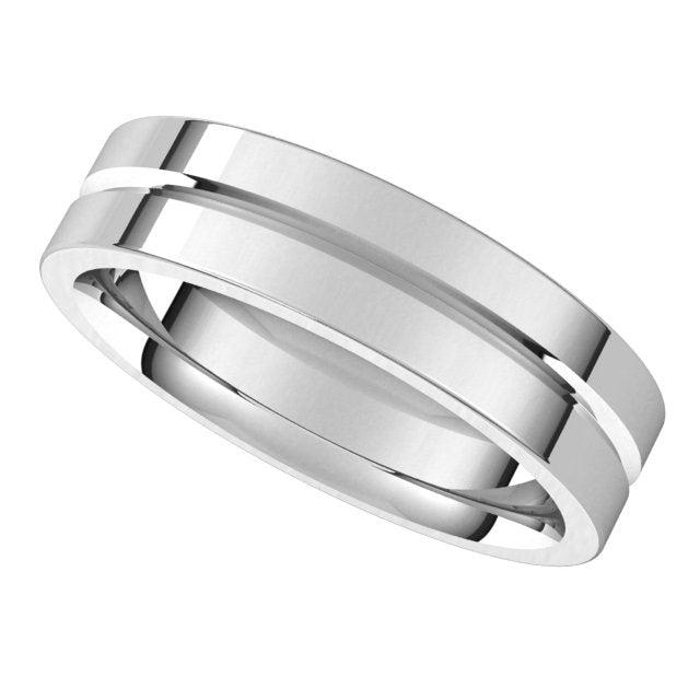 14K White 5 mm Grooved Comfort-Fit Flat Band Size 8
