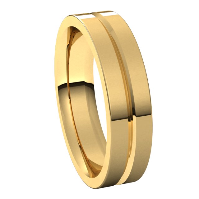 14K Yellow 6 mm Grooved Comfort-Fit Flat Band Size 10