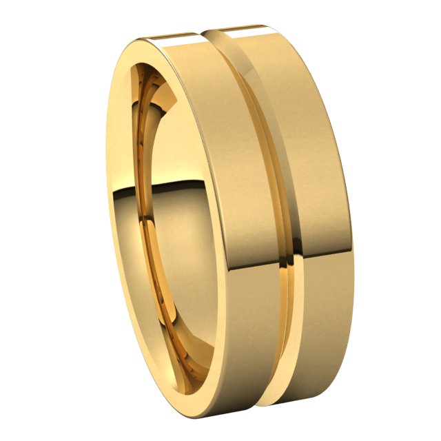 10K Yellow 7 mm Grooved Comfort-Fit Flat Band Size 8