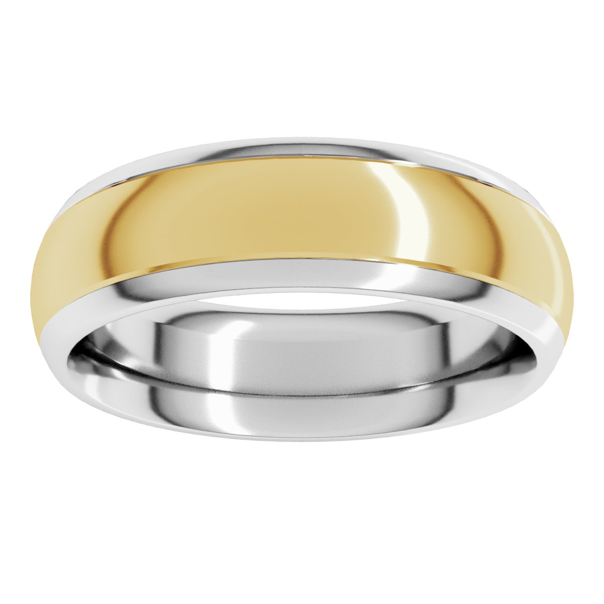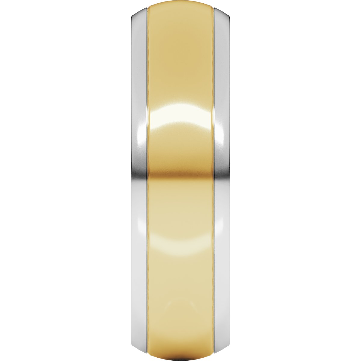 14K White/Yellow 6 mm Stepped Beveled-Edge Inlay Comfort-Fit Half Round Band Size 9