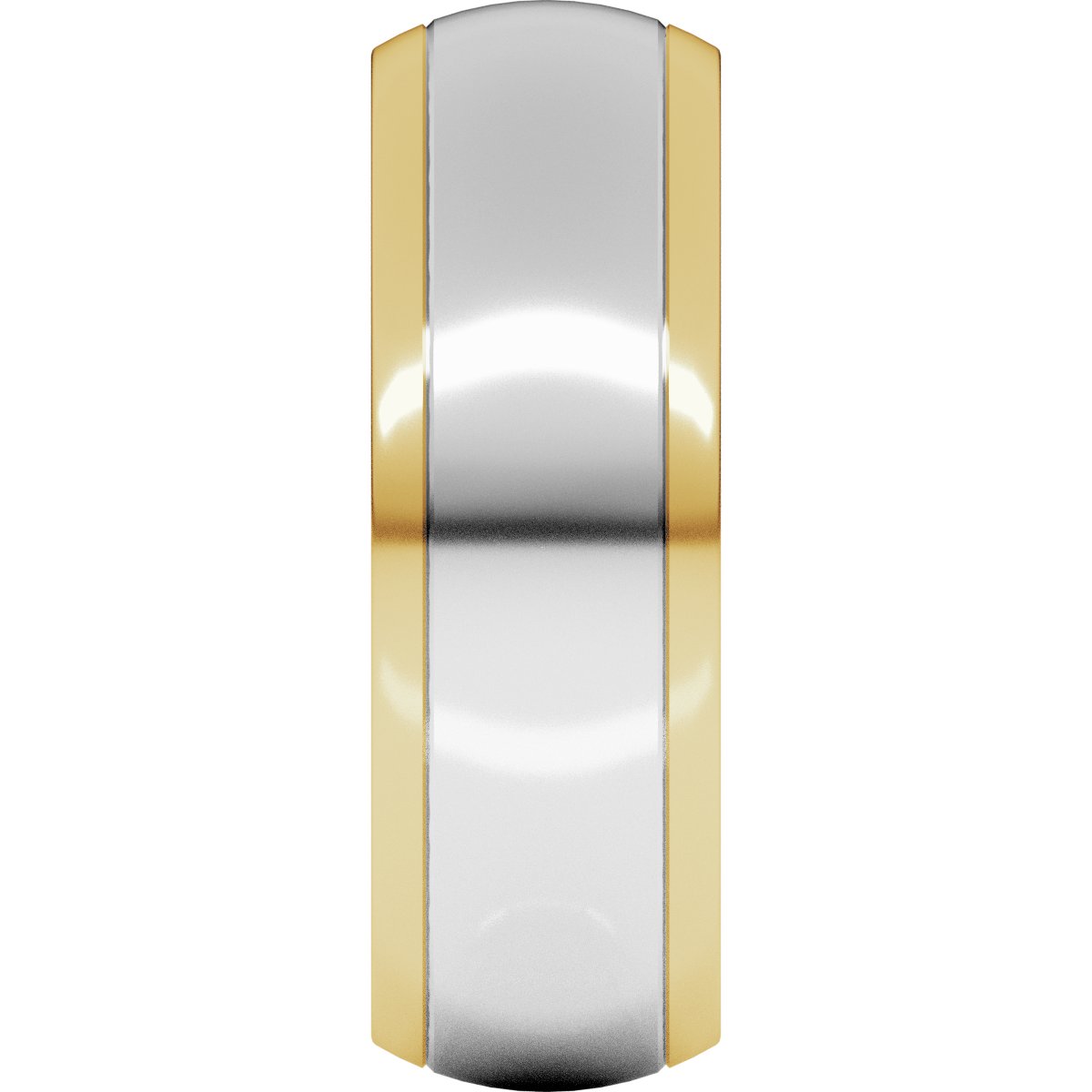 14K Yellow/White 7 mm Stepped Beveled-Edge Inlay Comfort-Fit Half Round Band Size 13