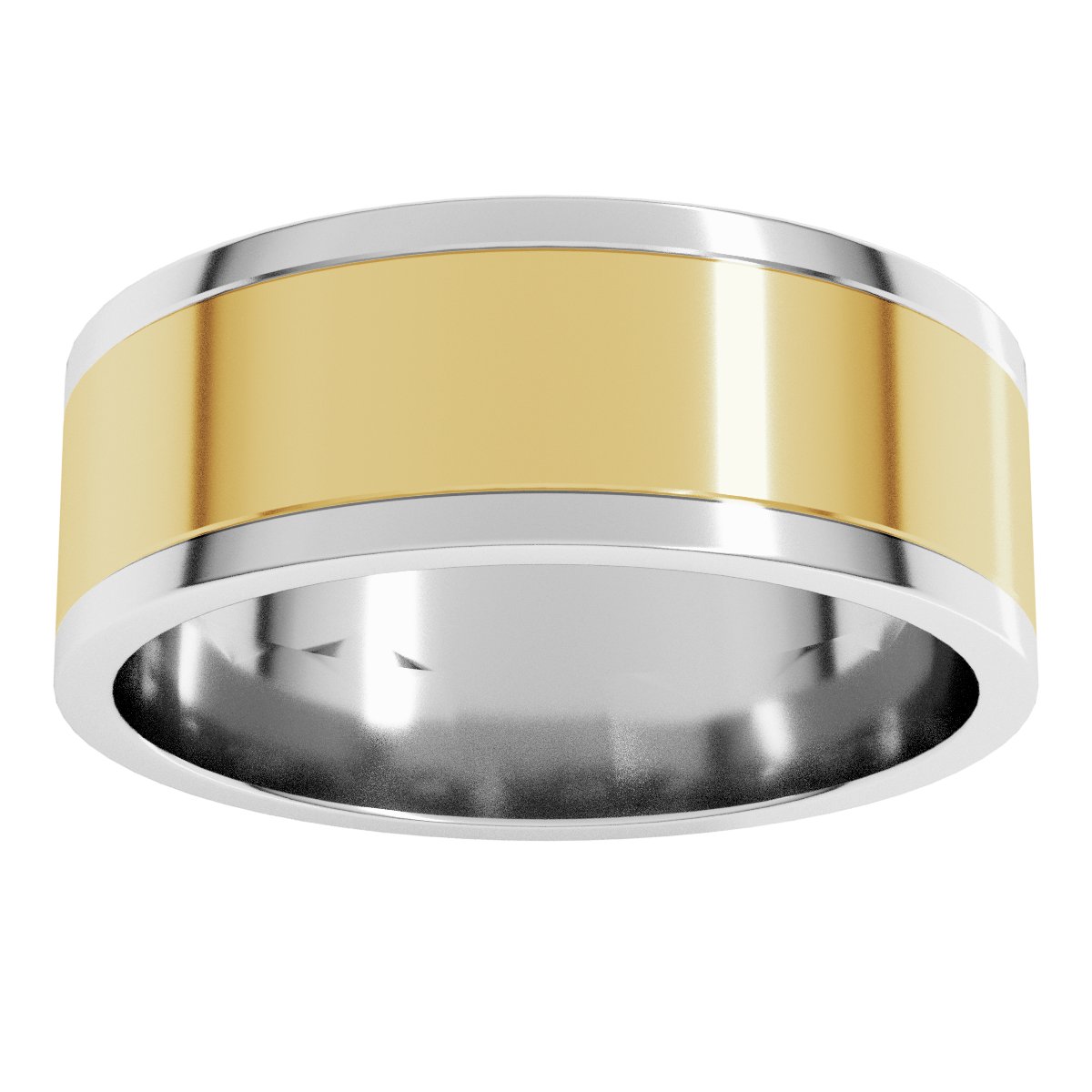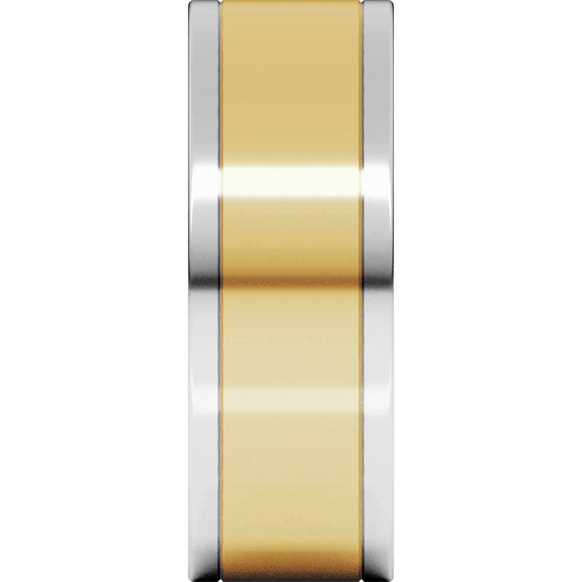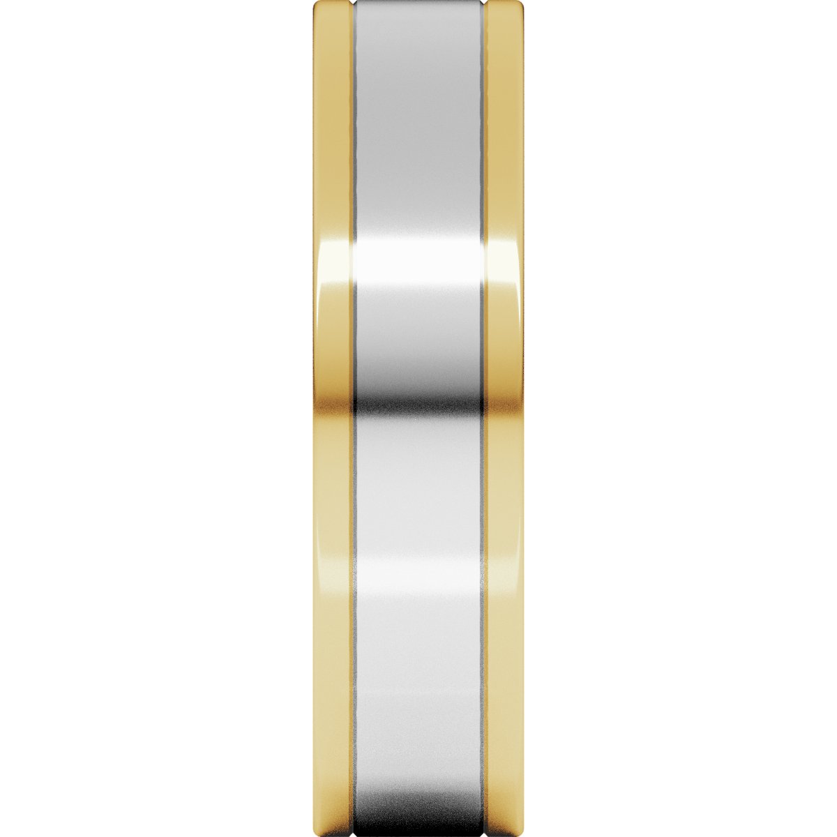 14K White/Yellow 7 mm Stepped-Edge Inlay Flat Band Size 10