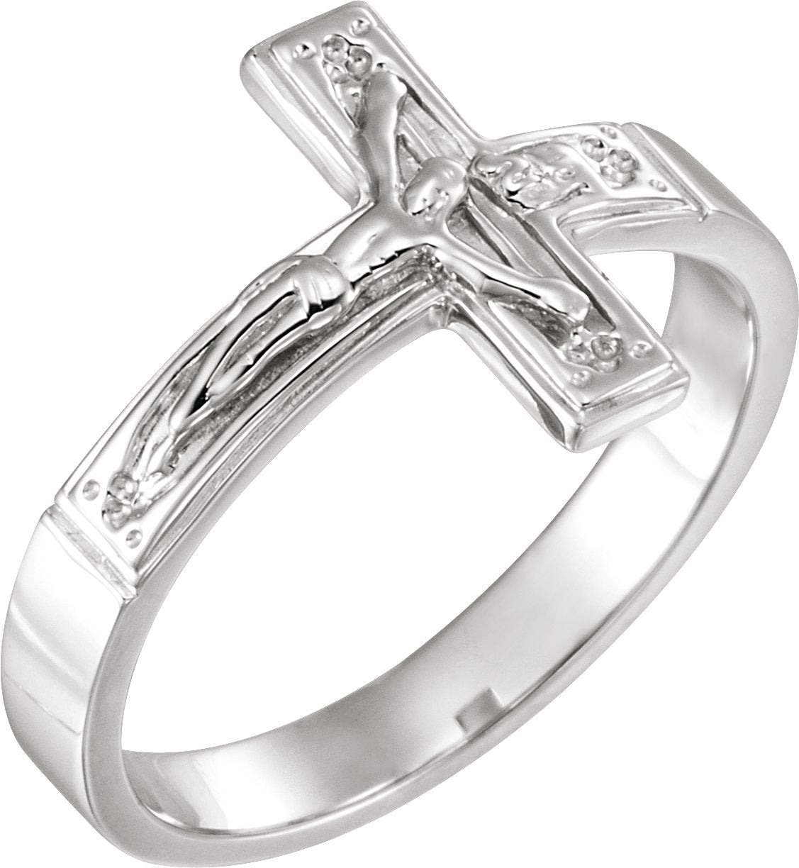 Sterling Silver 12 mm Crucifix Ring Size 8