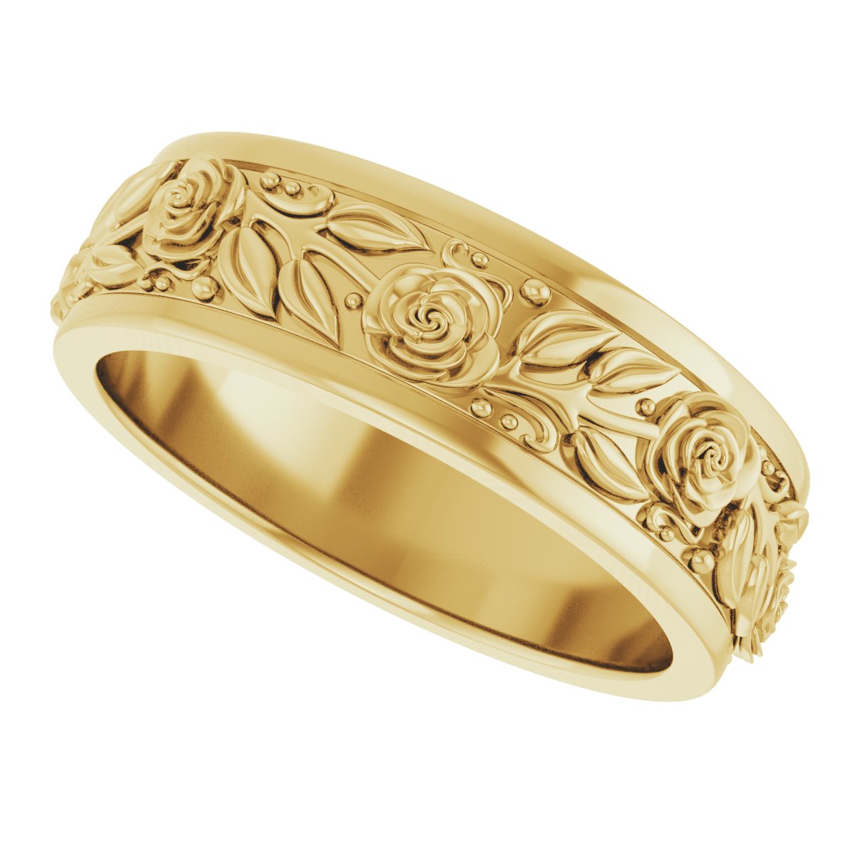 14K Yellow 7 mm Floral Flat Band Size 10