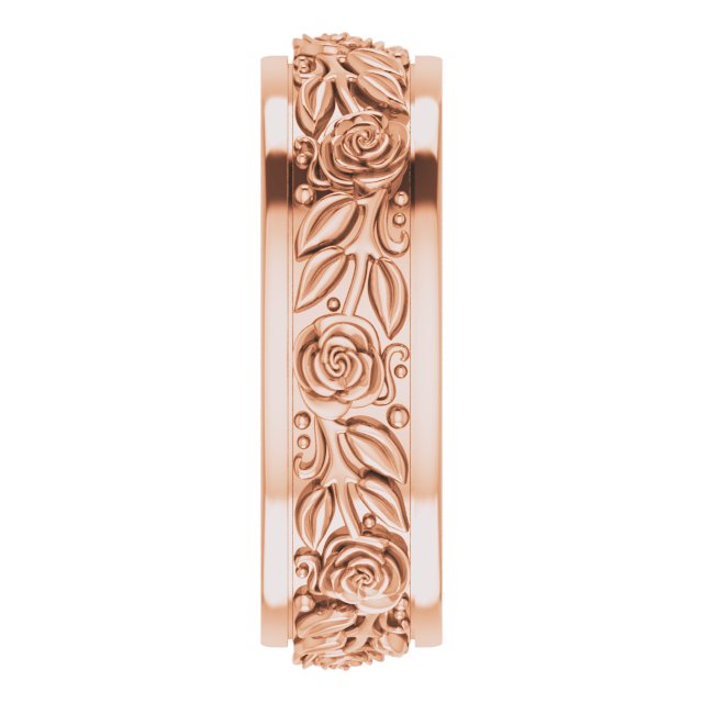 10K Rose 7 mm Floral Flat Band Size 9