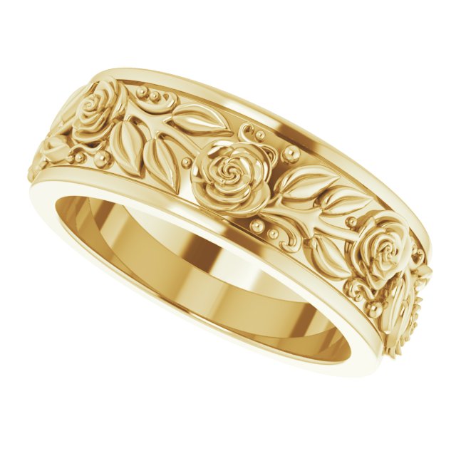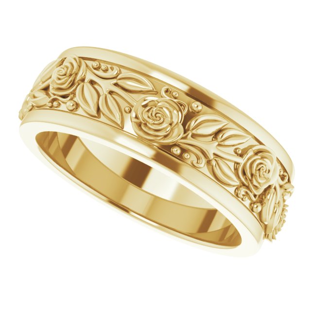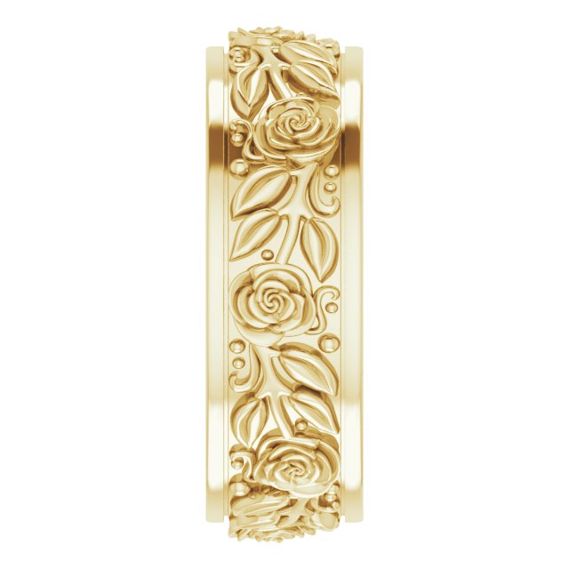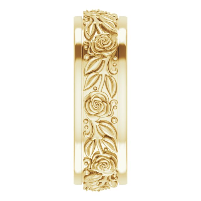 14K Yellow 7 mm Floral Flat Band Size 8