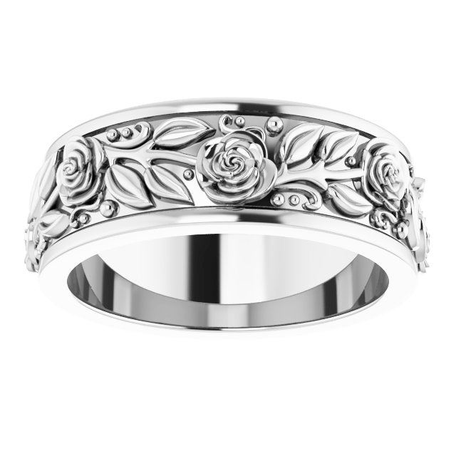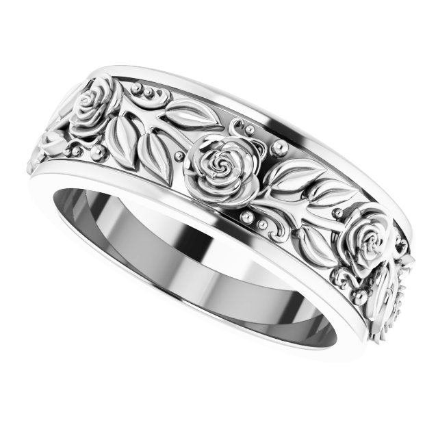 Continuum Sterling Silver 7 mm Floral Flat Band Size 11