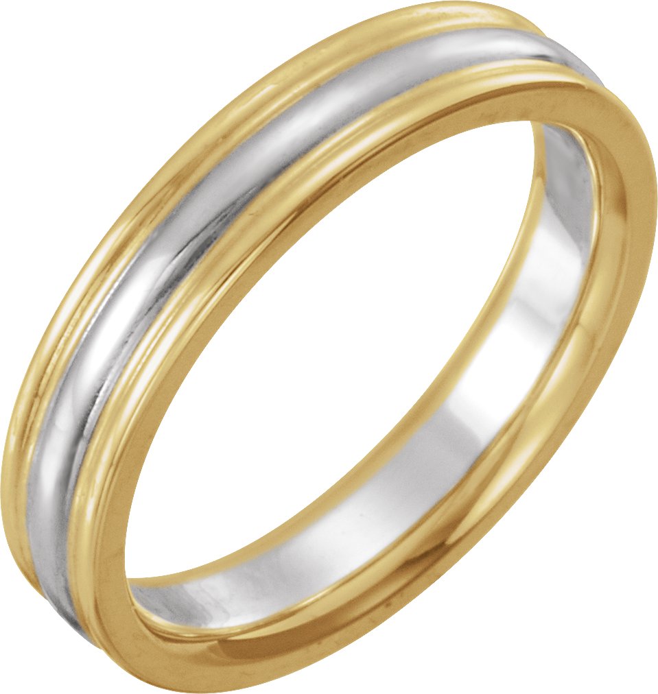 14K Yellow/White/Yellow 4 mm Grooved Comfort-Fit Half Round Band Size 9