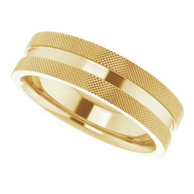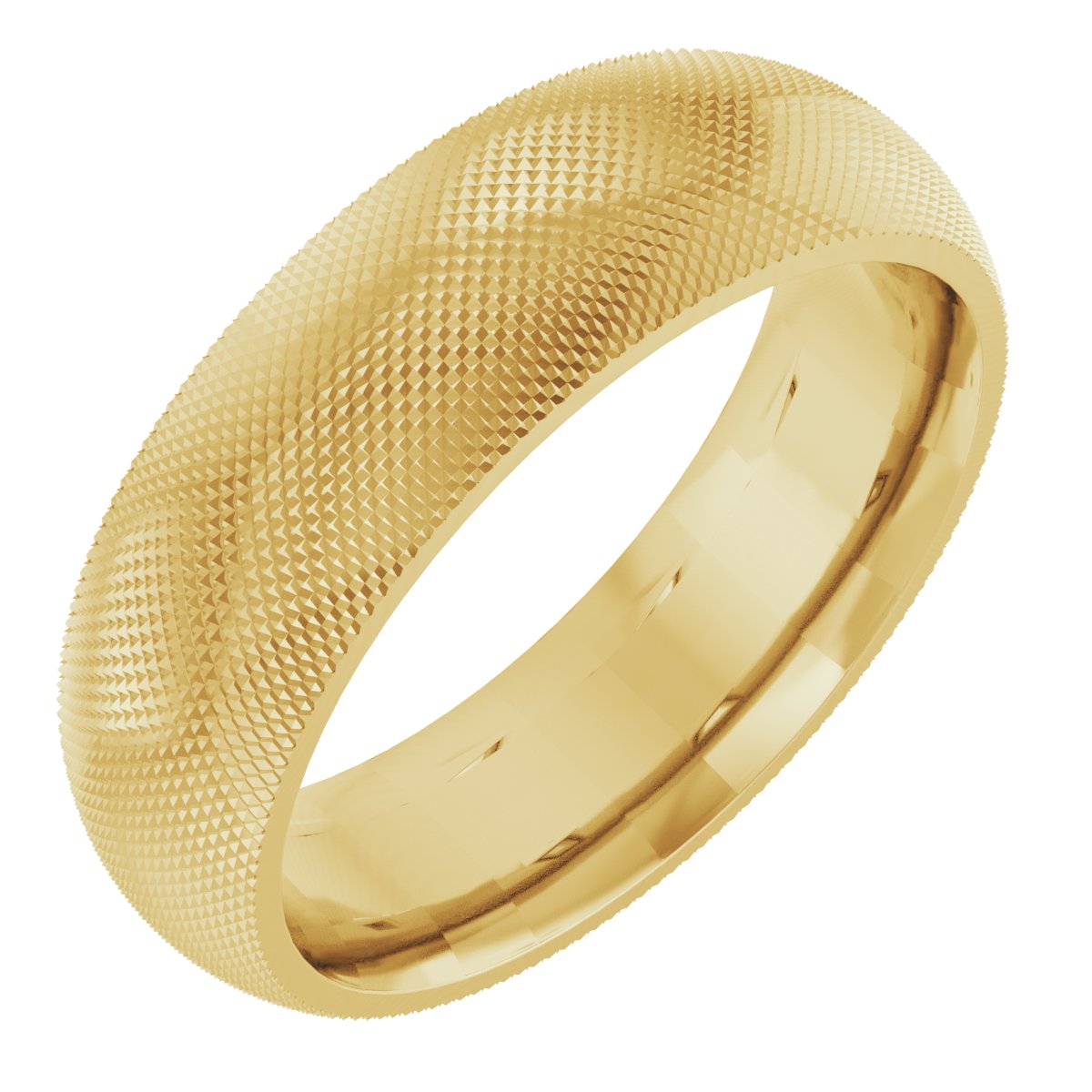 14K Yellow 6 mm Knurled Comfort-Fit Half Round Band Size 10