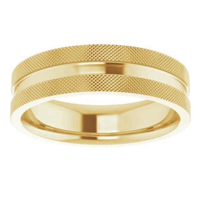 14K Yellow 6 mm Knurled Edge Flat Band Size 9