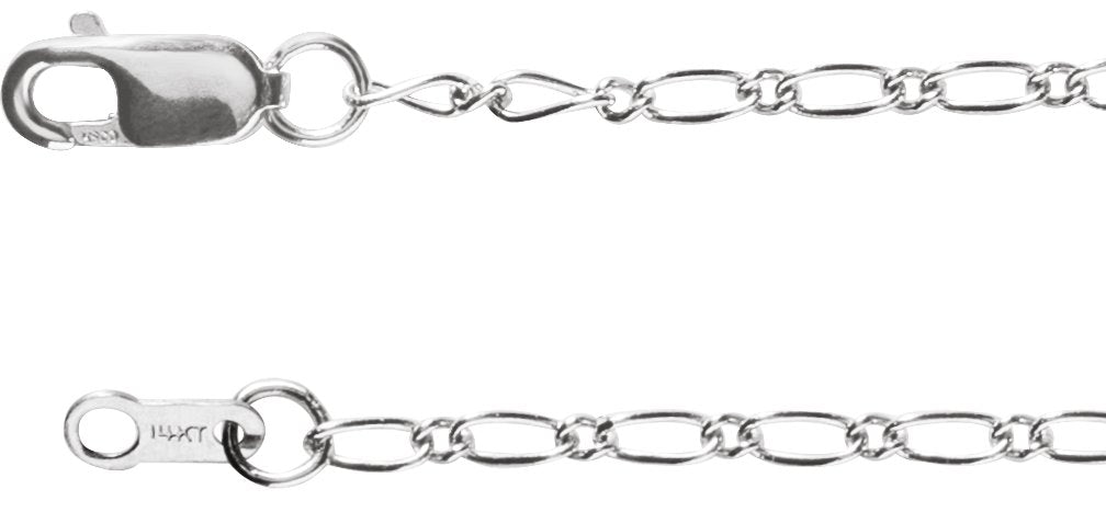 14K White 1.5 mm Adjustable Figaro 16-18" Chain