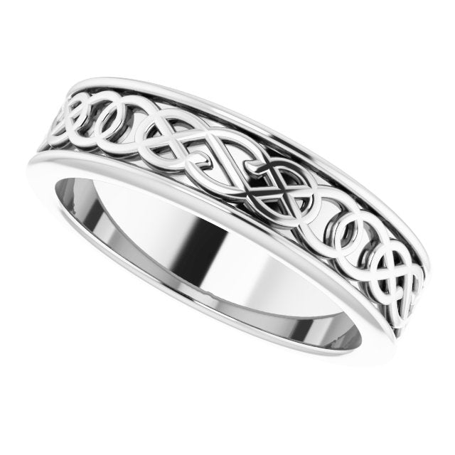10K White 5 mm Celtic-Inspired Flat Band Size 5.5