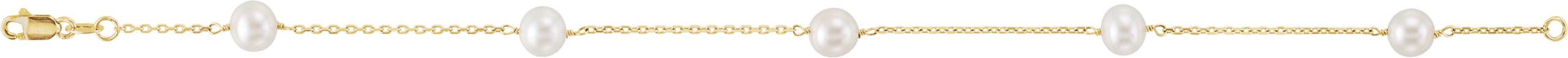 14K Yellow Cultured White Freshwater Pearl 5-Station 7" Bracelet