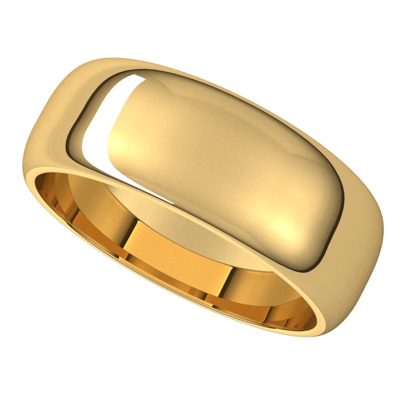 14K Yellow 7 mm Comfort-Fit Half Round Band Size 7