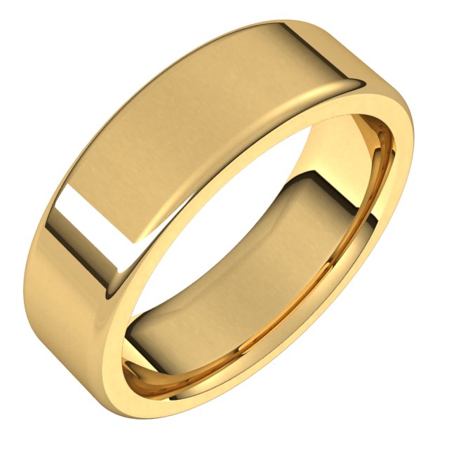 14K Yellow 6 mm Heavyweight Round-Edge Comfort-Fit Flat Band Size 6.5