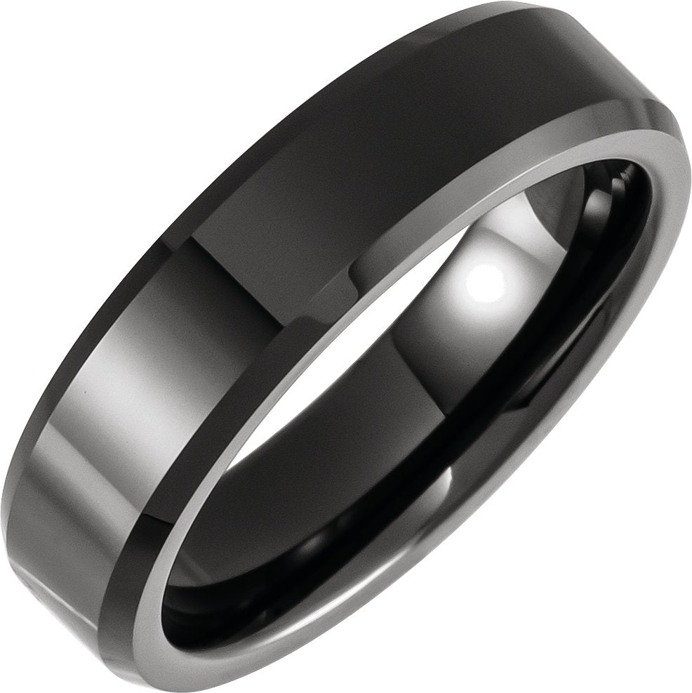 Black Ceramic 6 mm Beveled-Edge Comfort-Fit Band Size 13