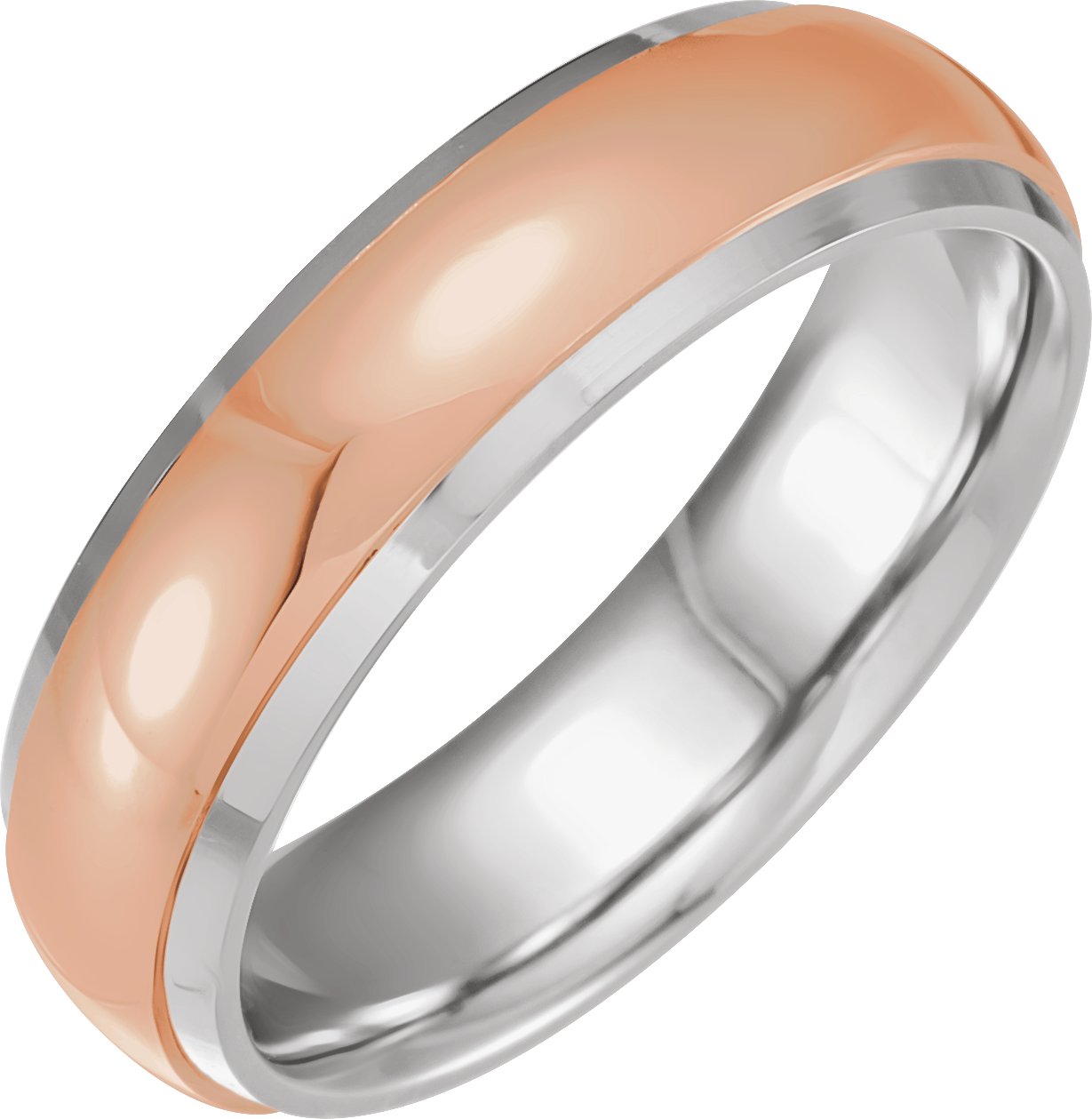 14K White/Rose 6 mm Diamond-Edge Inlay Half Round Band Size 10