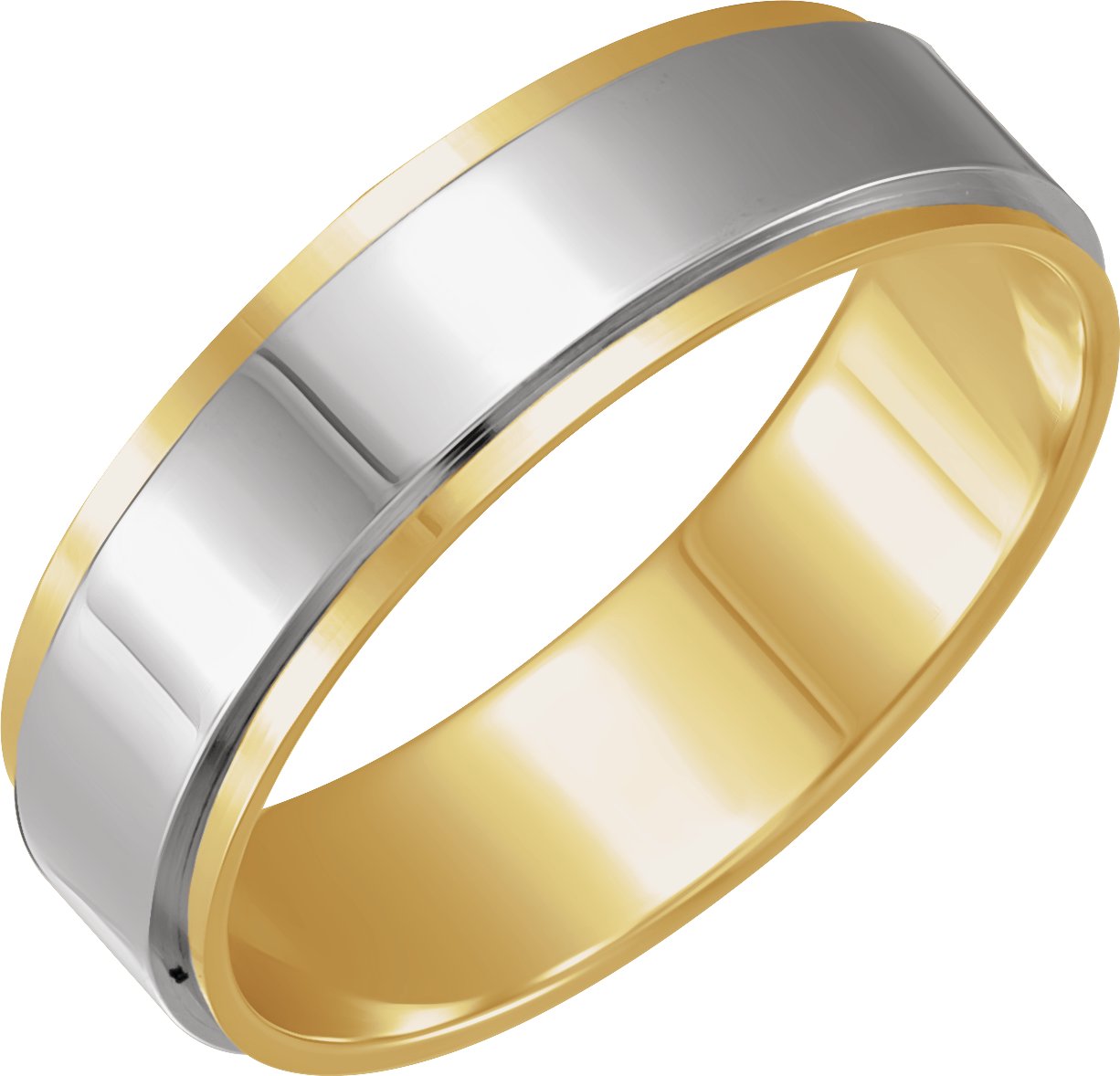 14K White/Yellow 6 mm Stepped-Edge Inlay Flat Band Size 10