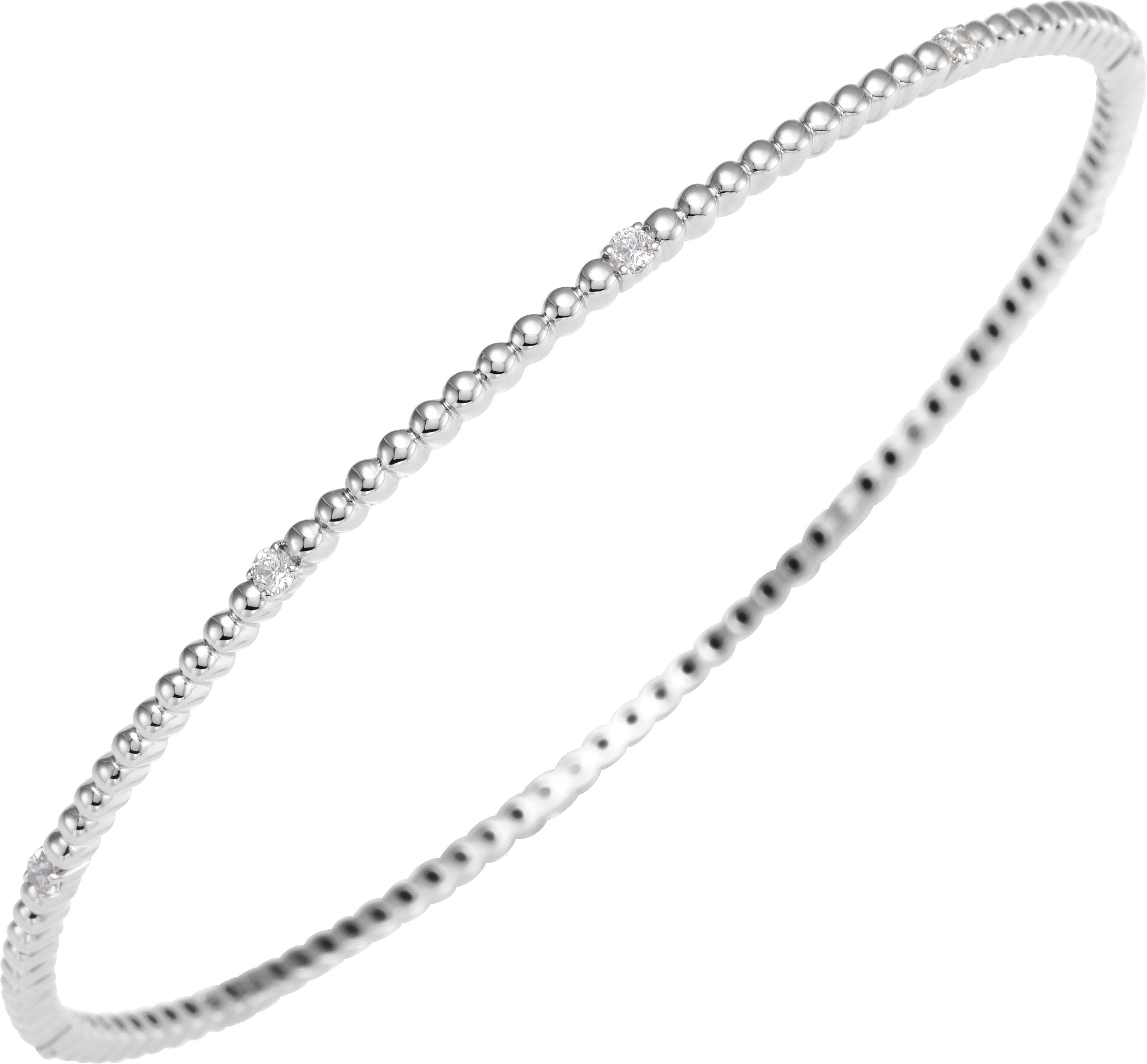 14K White 1/3 CTW Natural Diamond Beaded Bangle 7 3/4" Bracelet