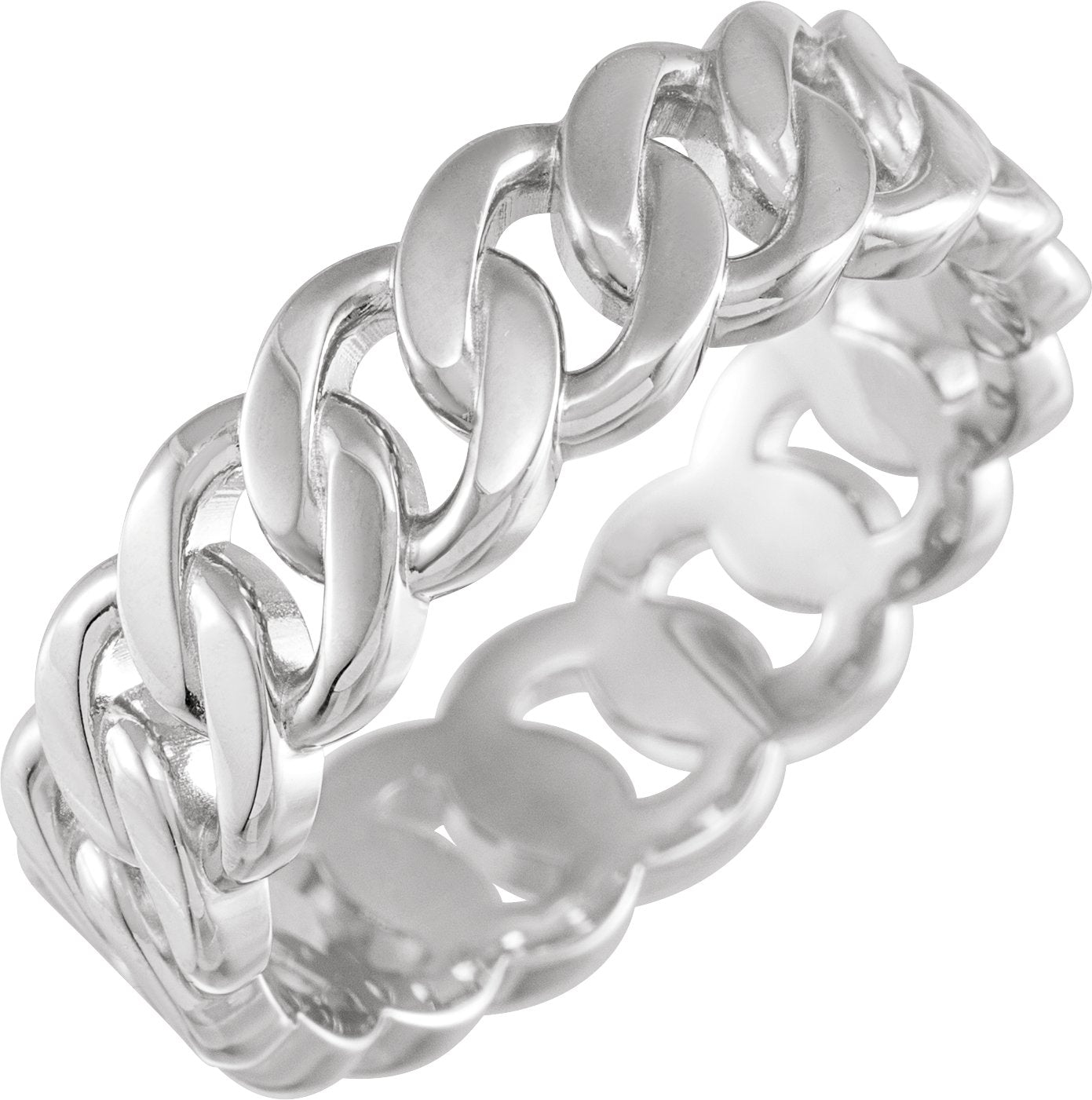 14K White 6.5 mm Chain Link Wedding Band Size 7