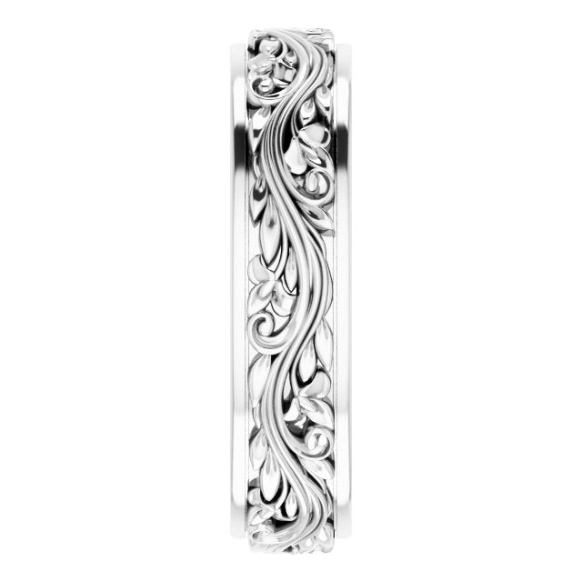 10K White 5 mm Floral Inlay Flat Band Size 6