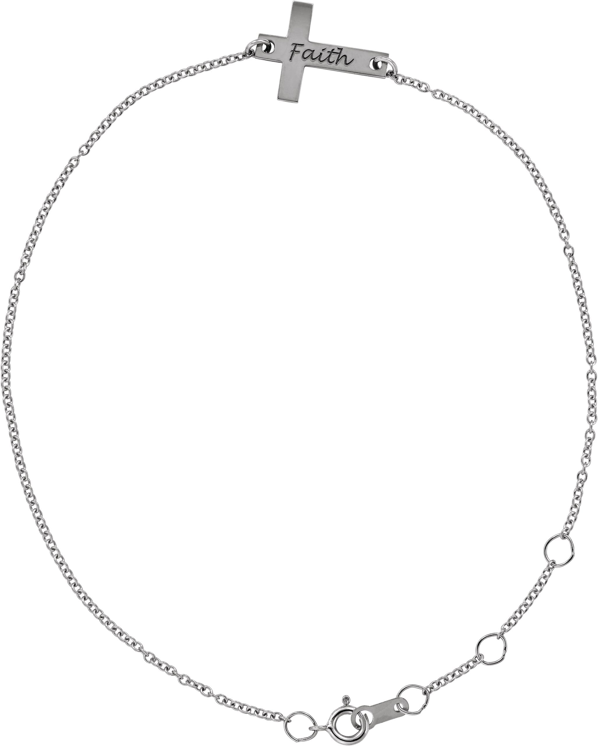 14K White Engravable Cross 6 1/2-7 1/2" Bracelet