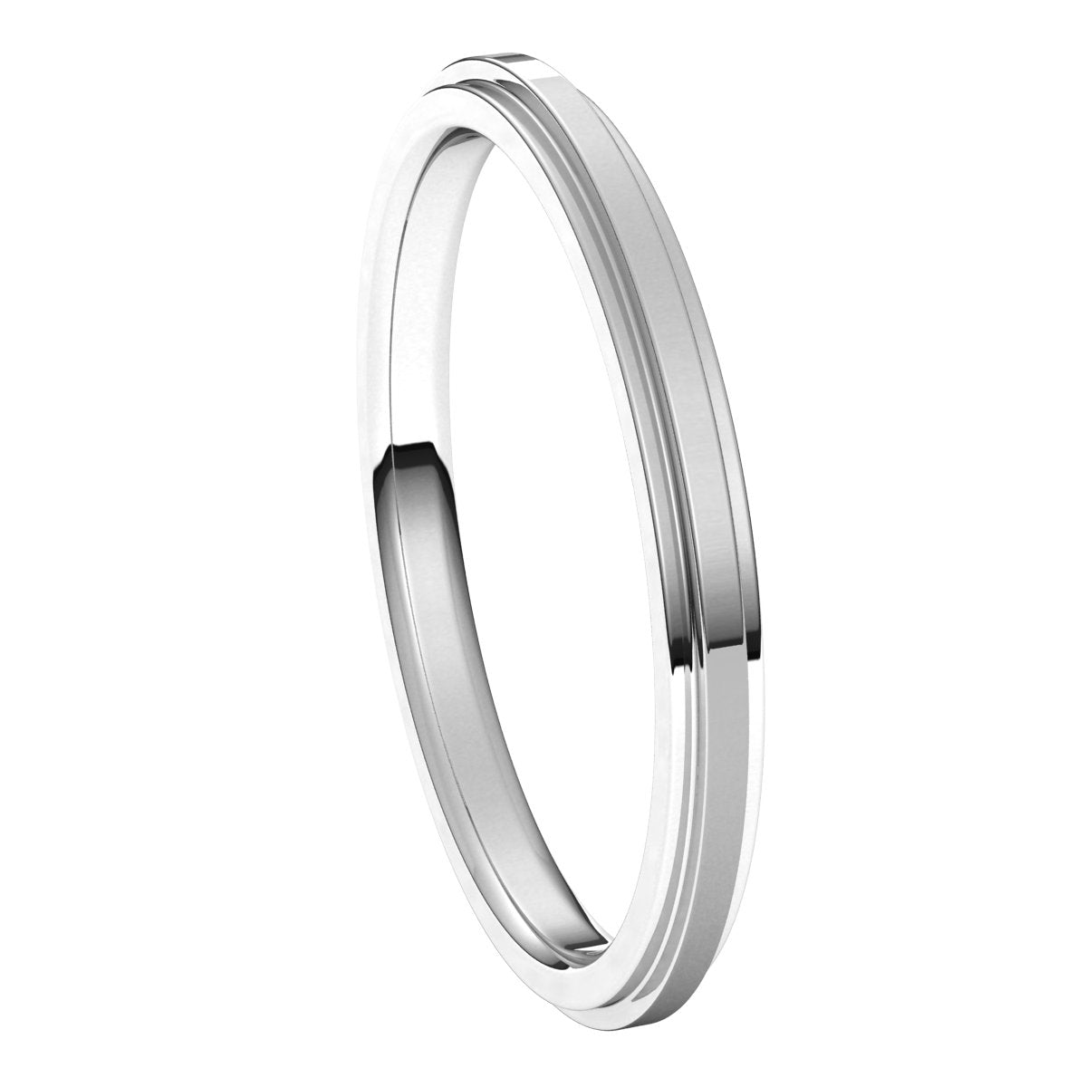 14K White 2 mm Stepped-Edge Comfort-Fit Flat Band Size 7