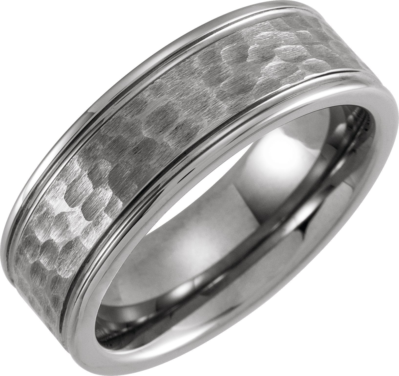 Tungsten 8 mm Grooved Inlay Comfort-Fit Flat Band Size 12.5
