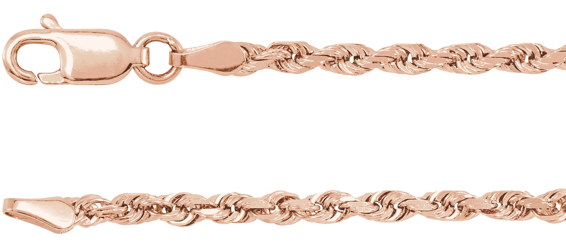 14K Rose 2.5 mm Diamond-Cut Rope 24" Chain