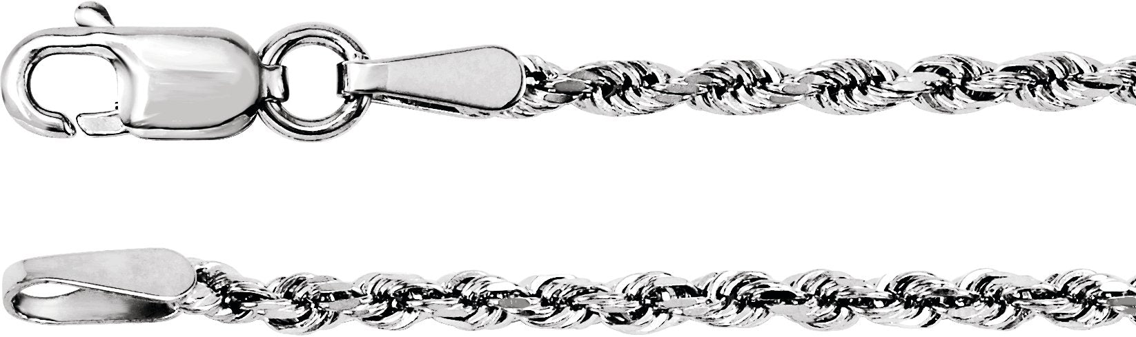 14K White 1.8 mm Diamond-Cut Rope 24" Chain