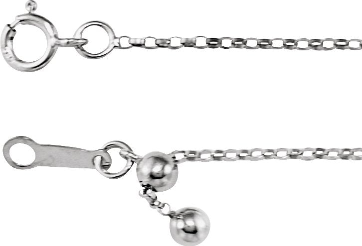 14K White 1.1 mm Adjustable Rolo 16-22" Chain