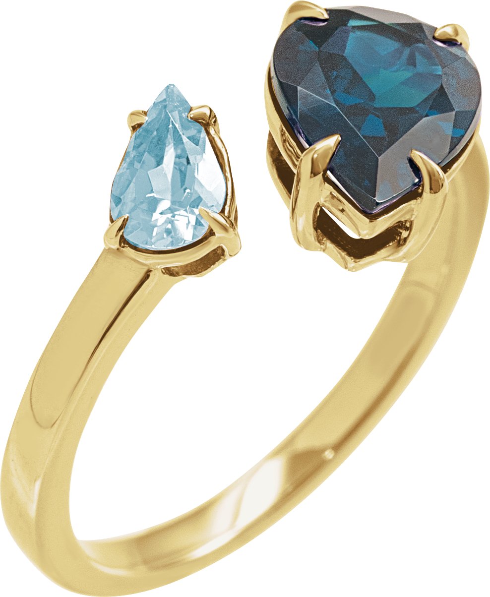 14K Yellow Natural London Blue Topaz & Natural Sky Blue Topaz Ring
