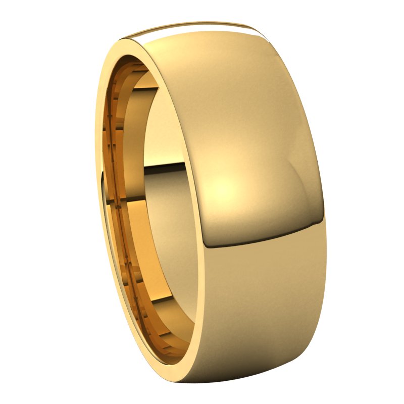 14K Yellow 7 mm Lightweight Comfort-Fit Half Round Band Size 13