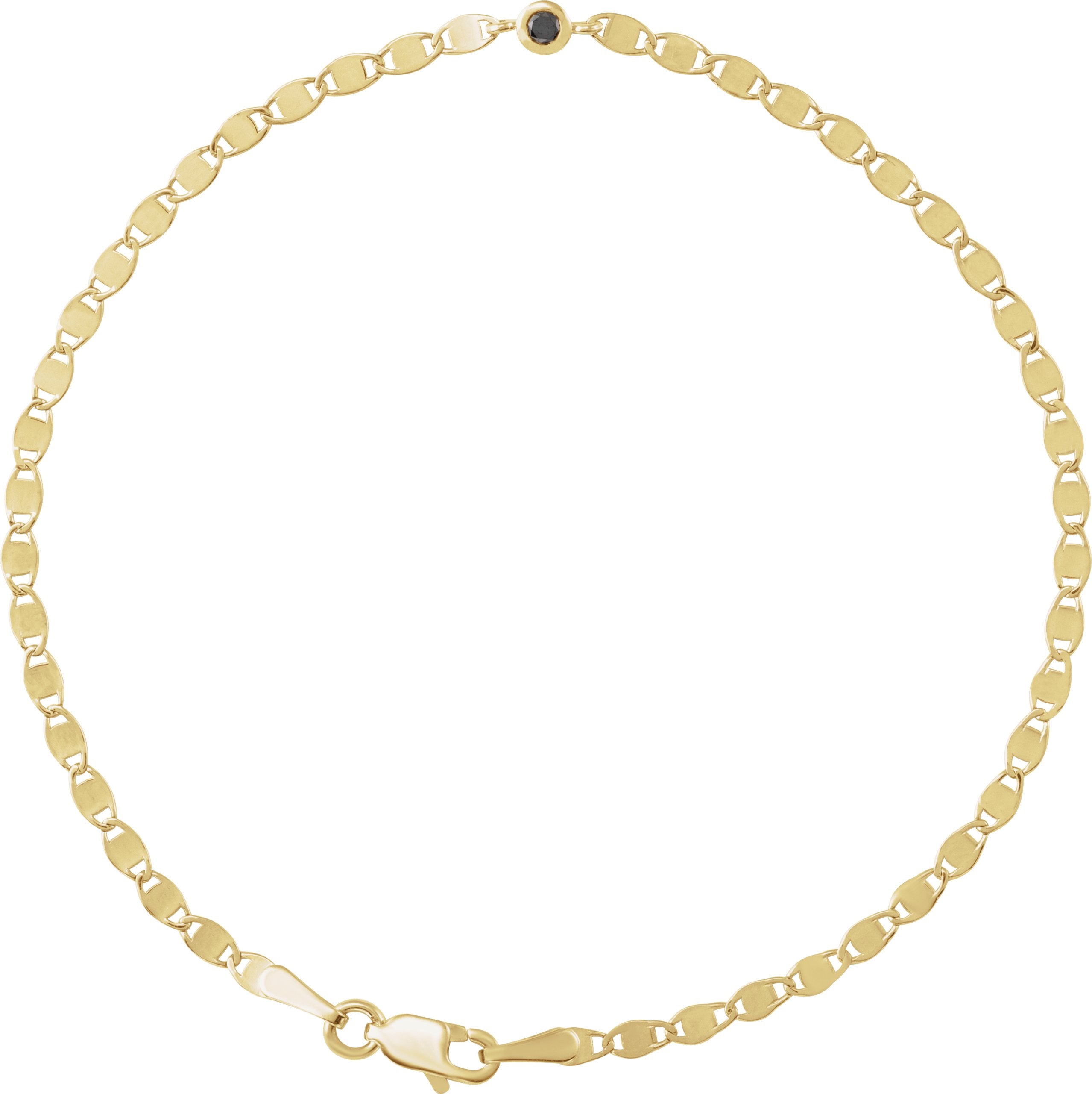 14K Yellow .06 CT Natural Black Diamond Bezel-Set Link 7 1/2" Bracelet