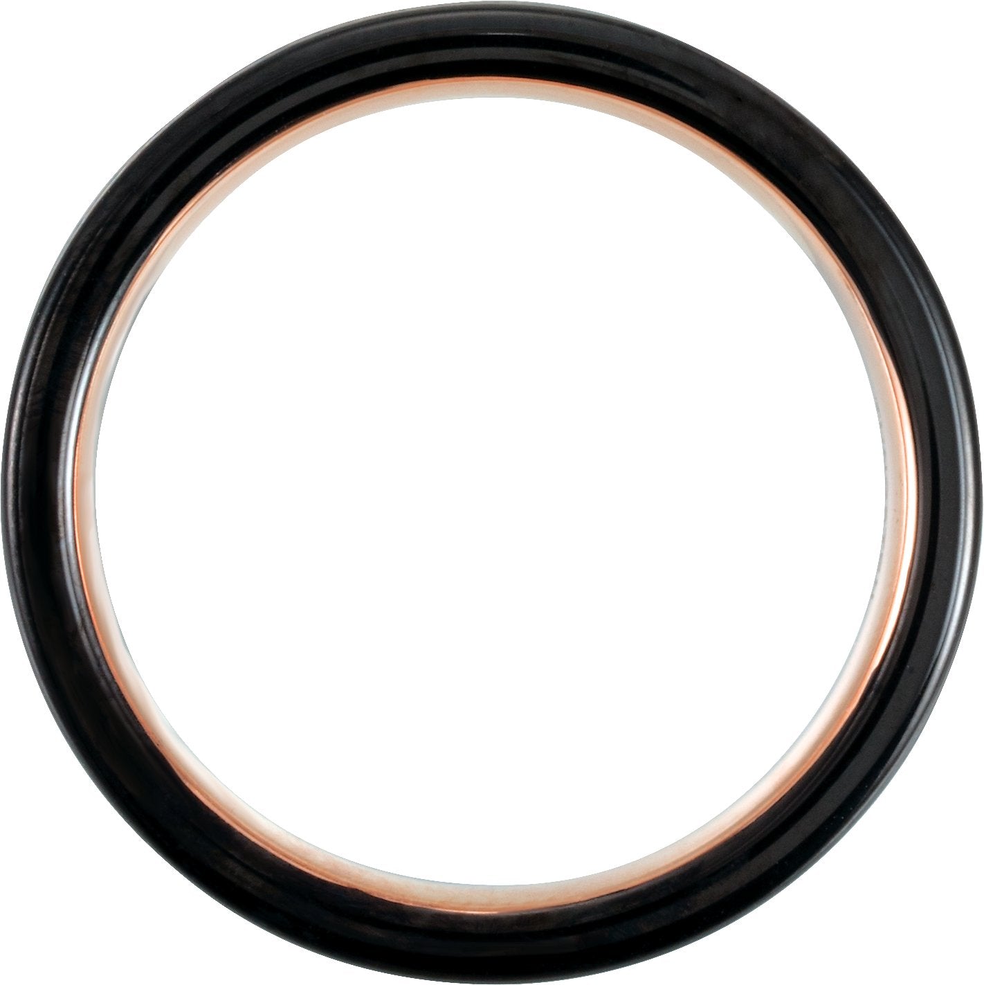 Black & 18K Rose Gold PVD Tungsten 6 mm Grooved Comfort-Fit Band Size 7