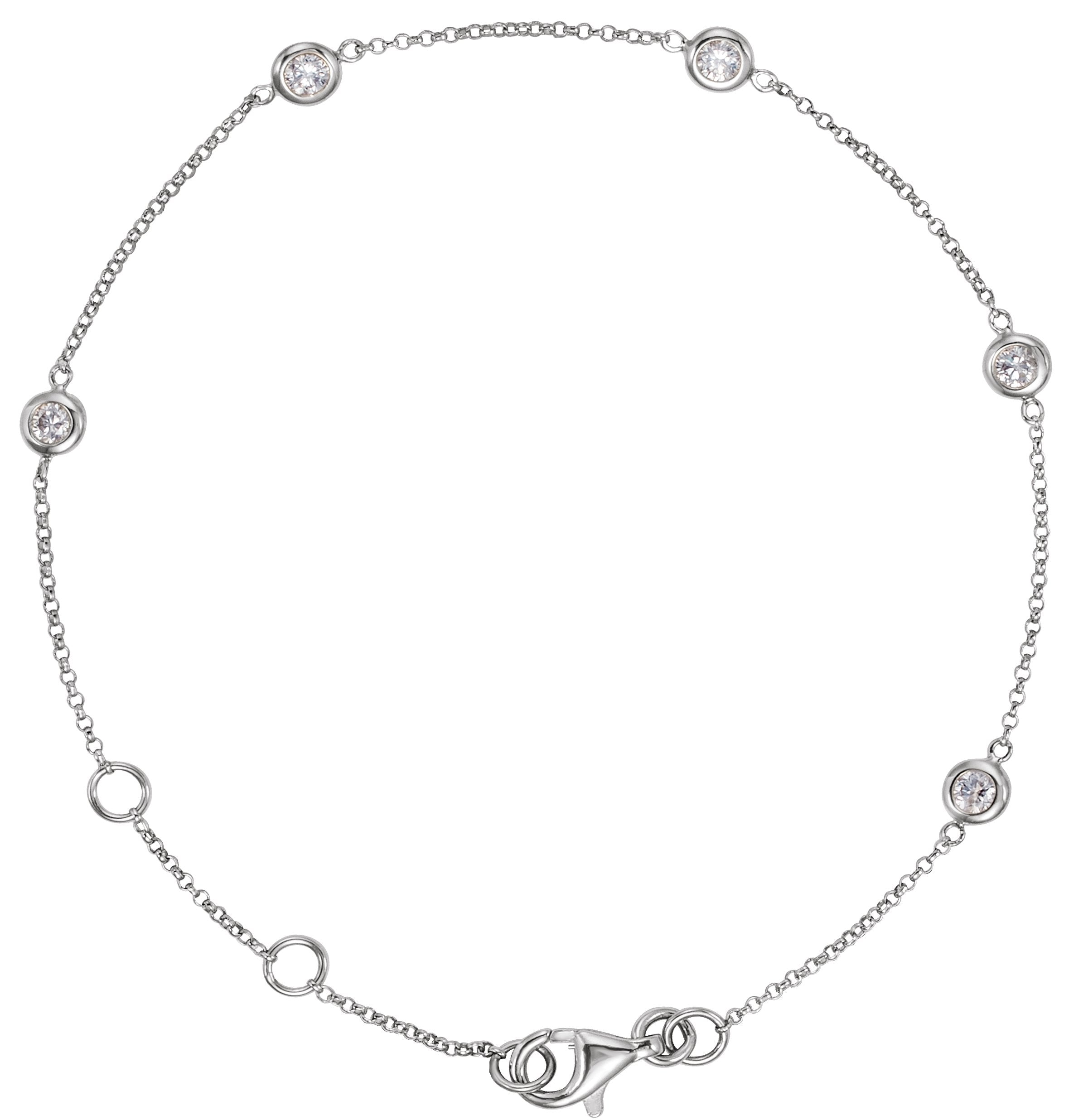14K White 1/4 CTW Natural Diamond Bezel-Set 5-Station 5 1/2-7" Bracelet
