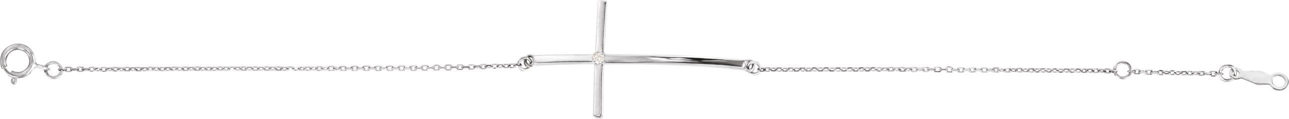 14K White .025 CT Natural Diamond Sideways Cross 7-8" Bracelet