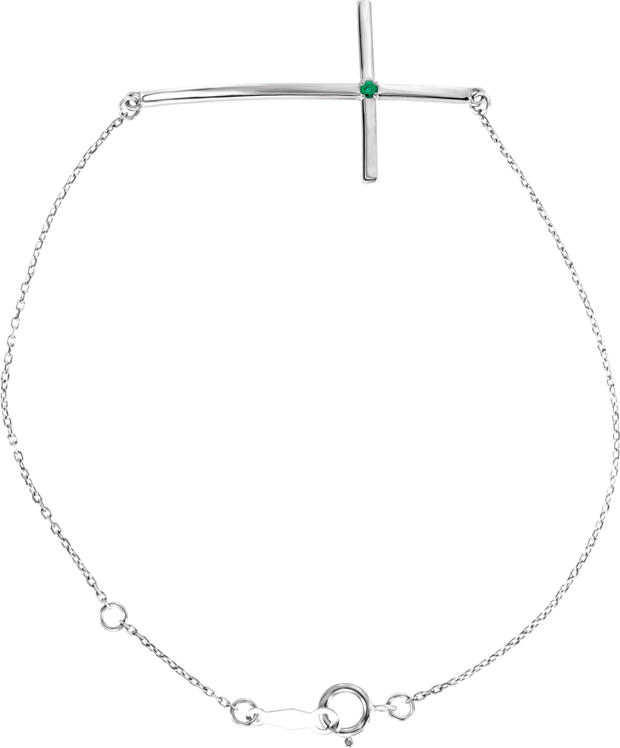 14K White Natural Emerald Sideways Cross 7-8" Bracelet