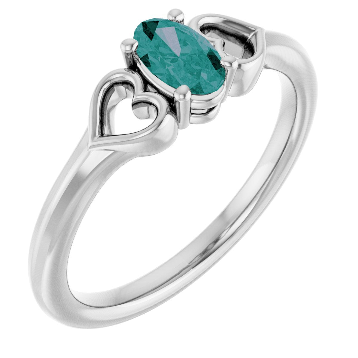 14K White Lab-Grown Alexandrite Youth Heart Ring