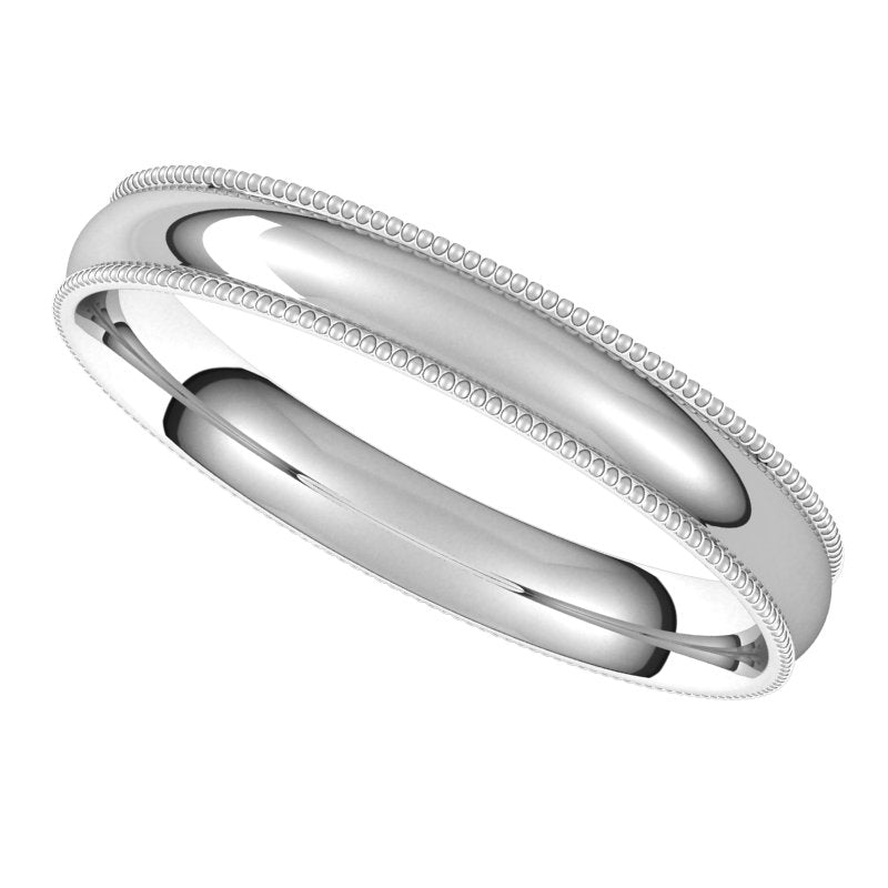 18K White 4 mm Lightweight Milgrain Half Round Band Size 9.5