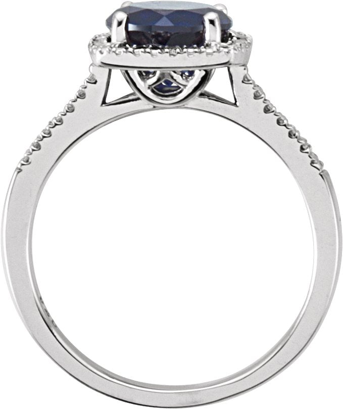14K White Natural Ceylon Blue Sapphire & .03 CTW Natural Diamond Ring