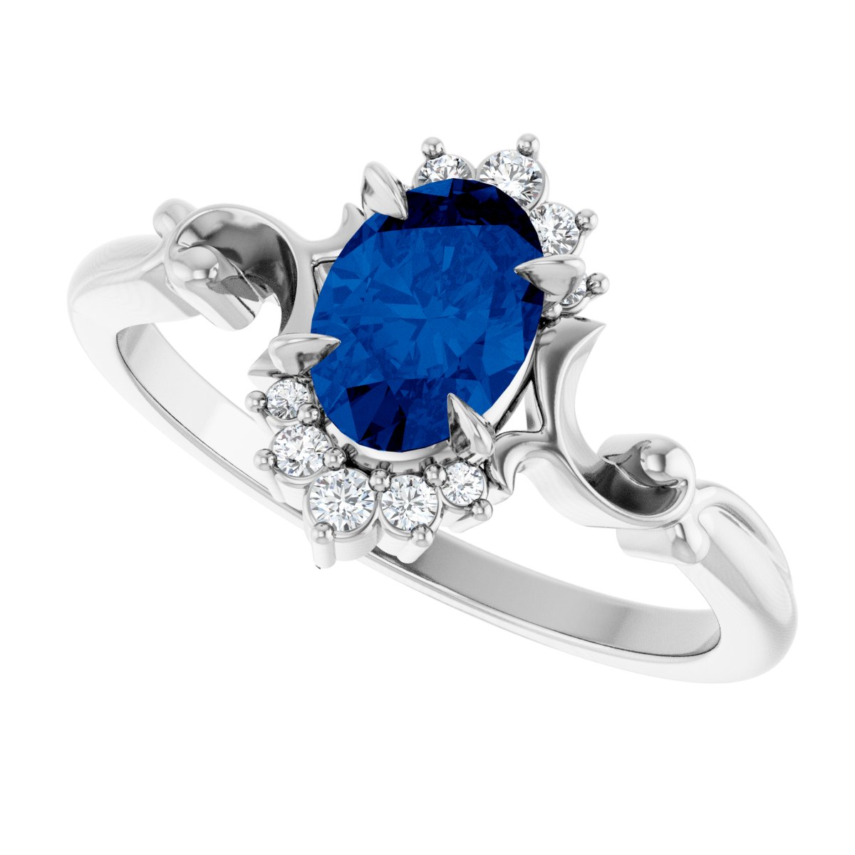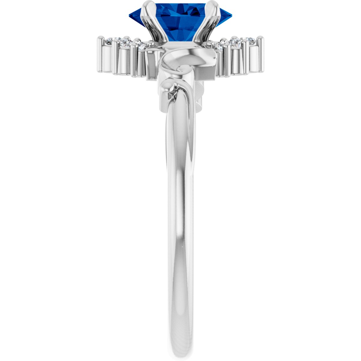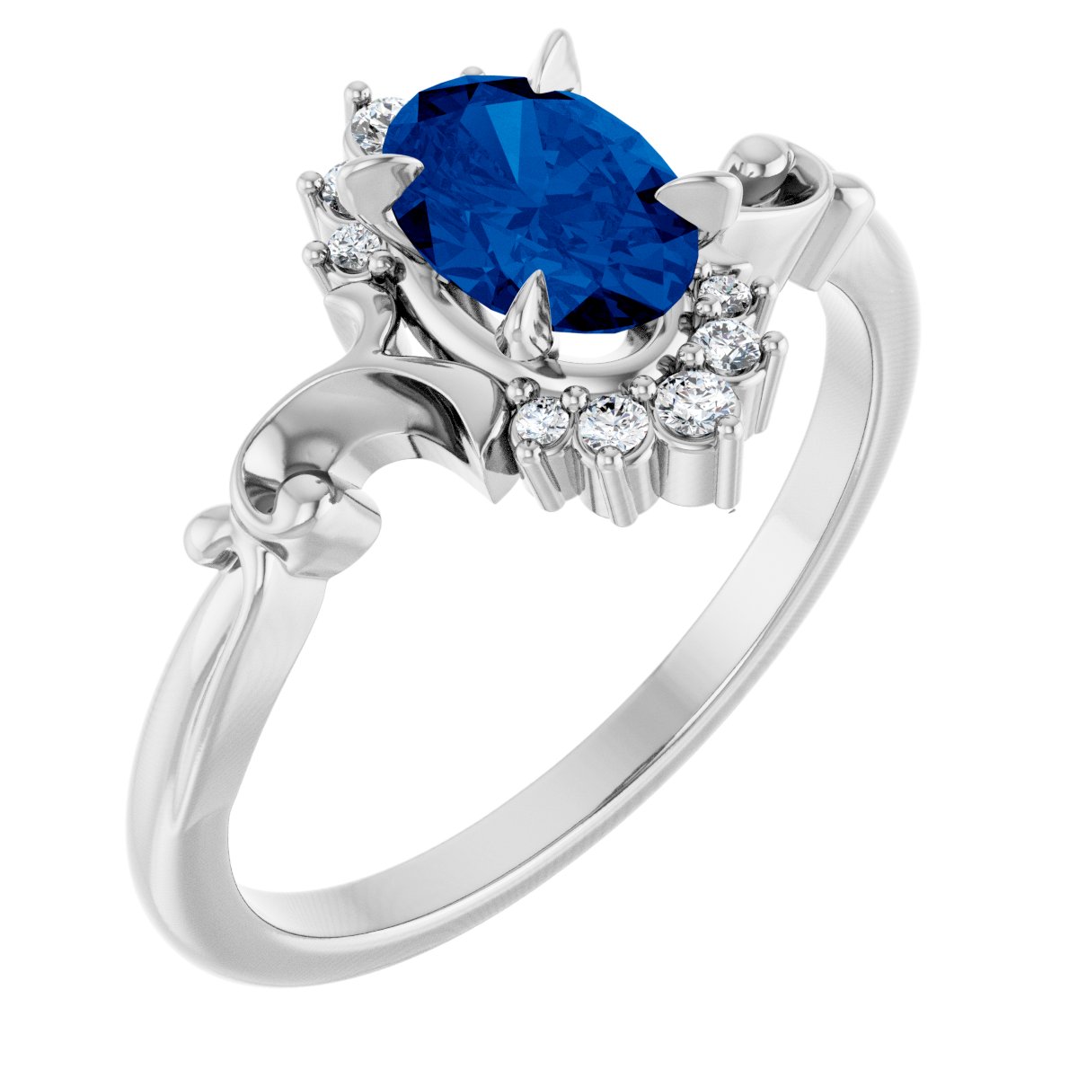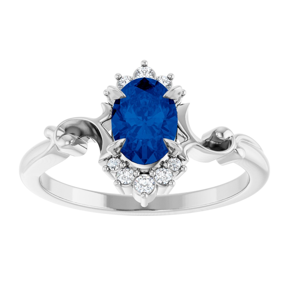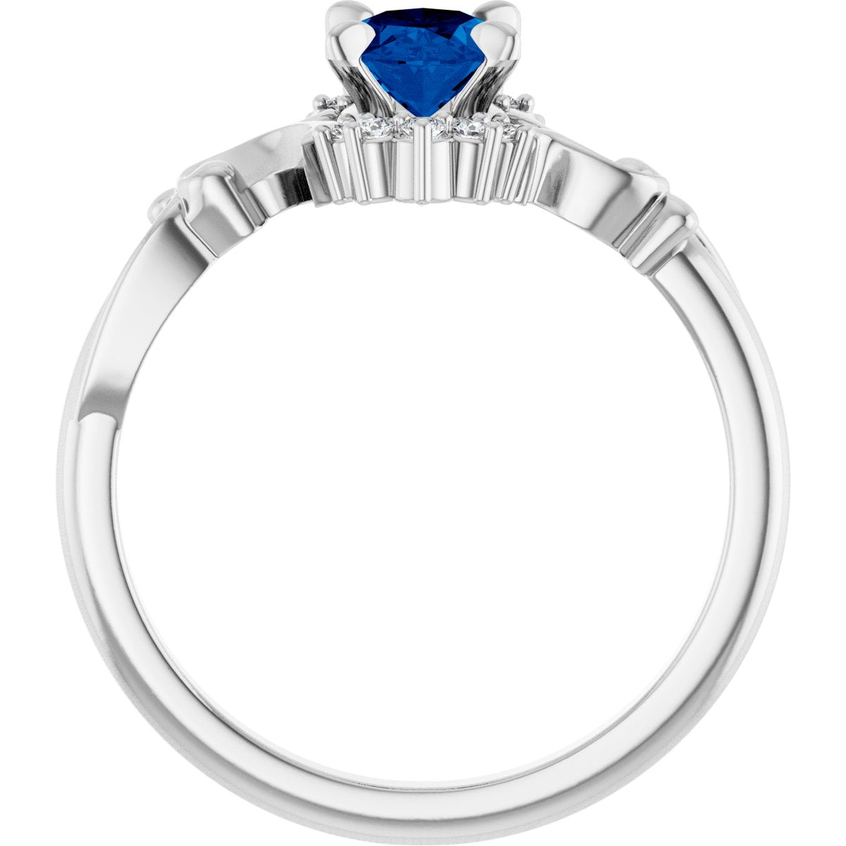 14K White Lab-Grown Blue Sapphire & .08 CTW Natural Diamond Ring