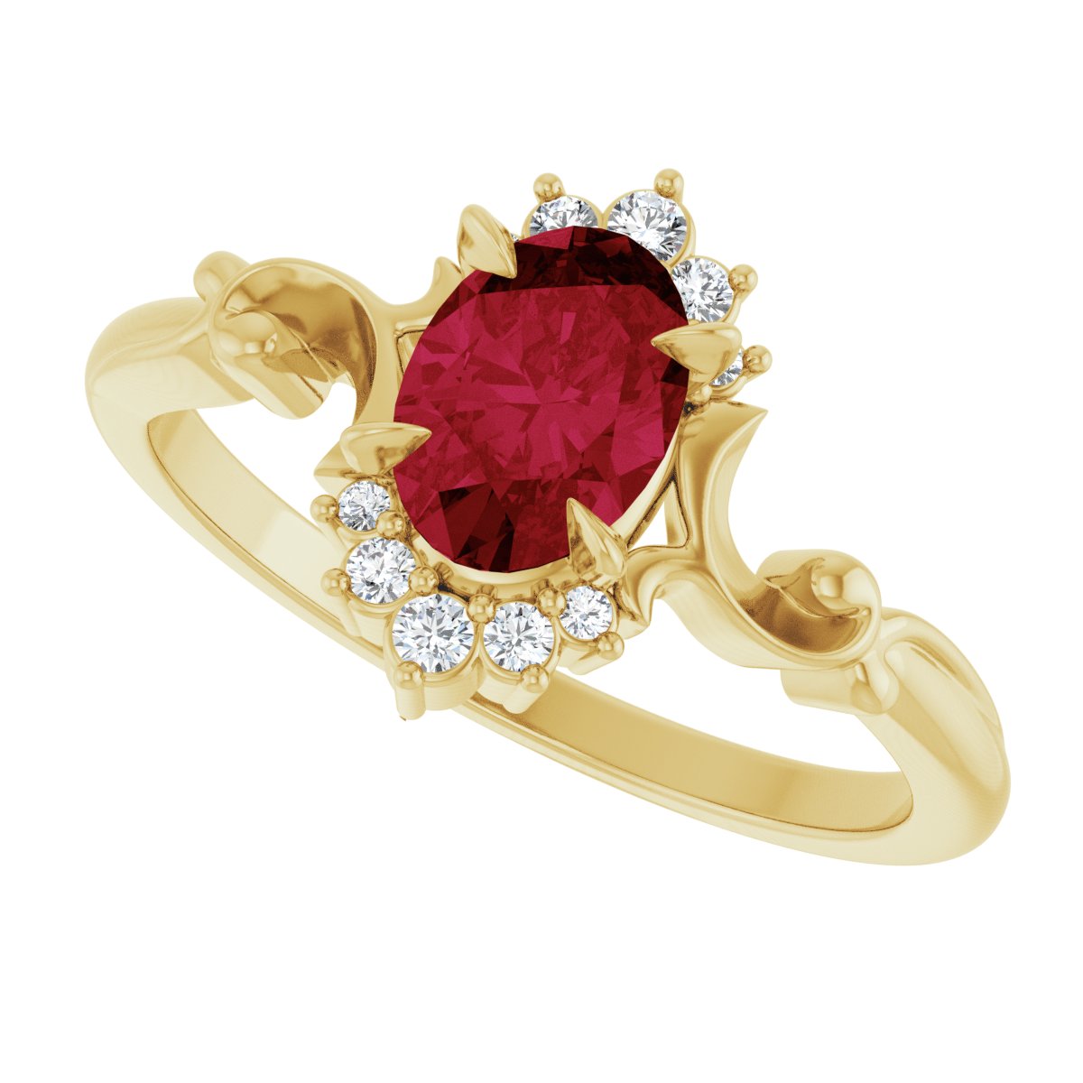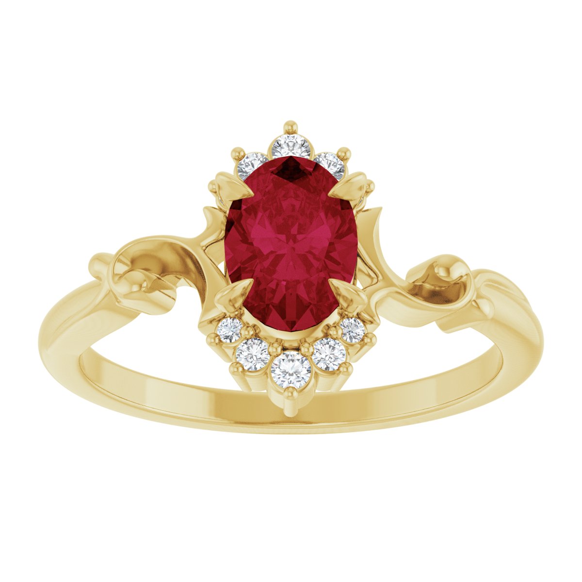 14K Yellow Lab-Grown Ruby & .08 CTW Natural Diamond Ring