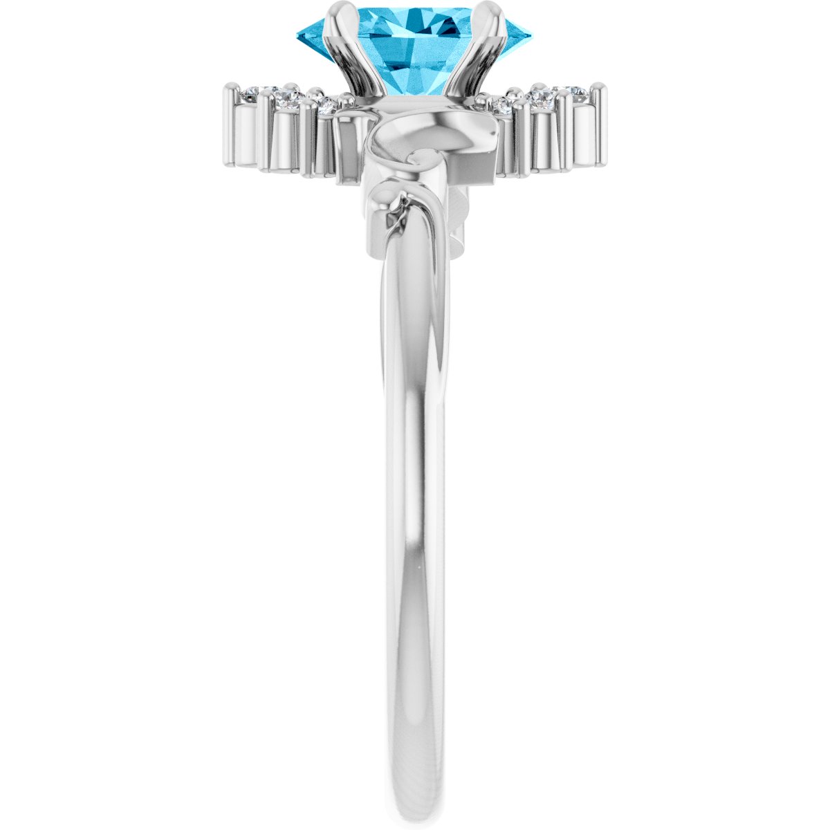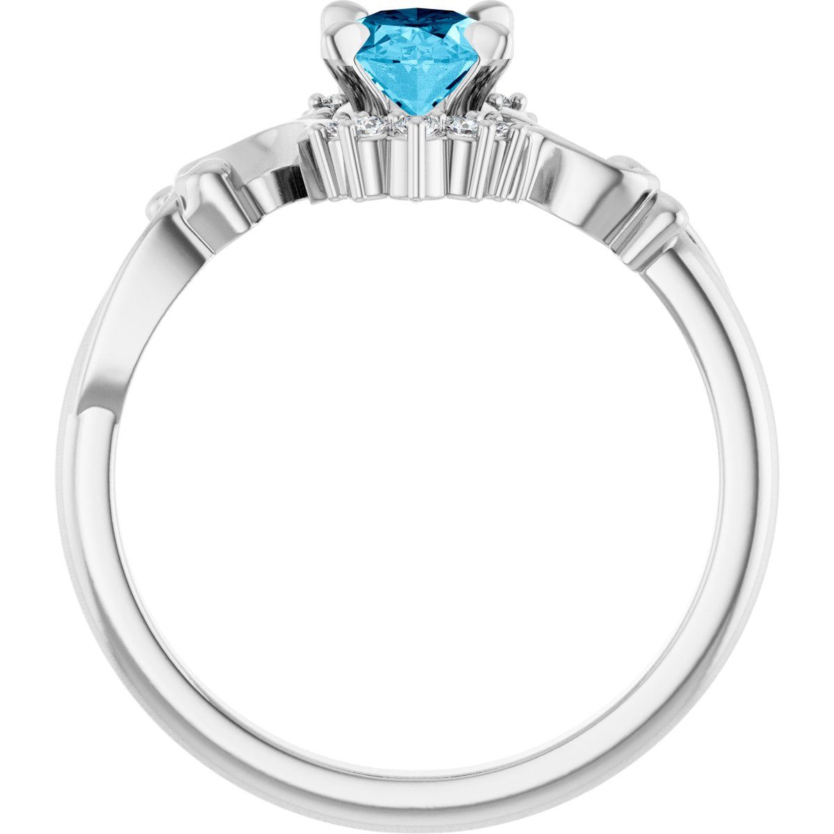 14K White Lab-Grown Aqua Sapphire & .08 CTW Natural Diamond Ring