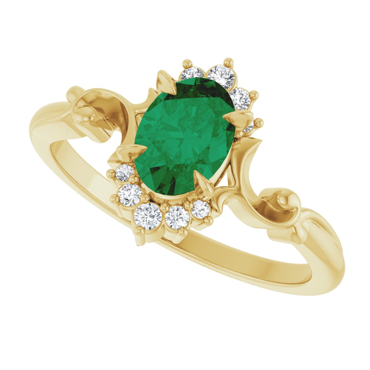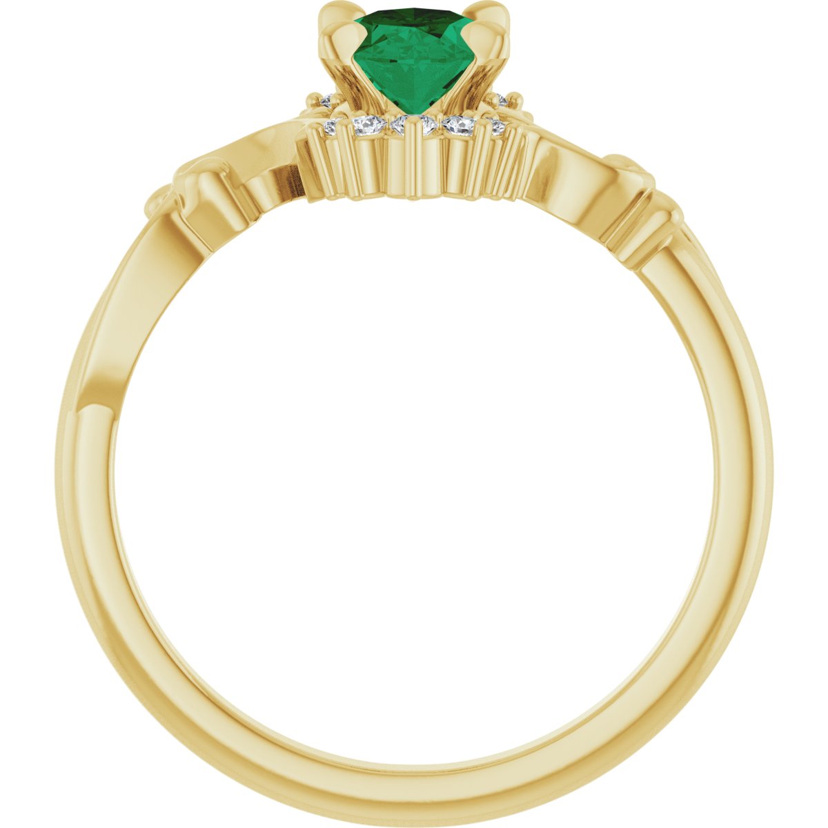 14K Yellow Lab-Grown Emerald & .08 CTW Natural Diamond Ring