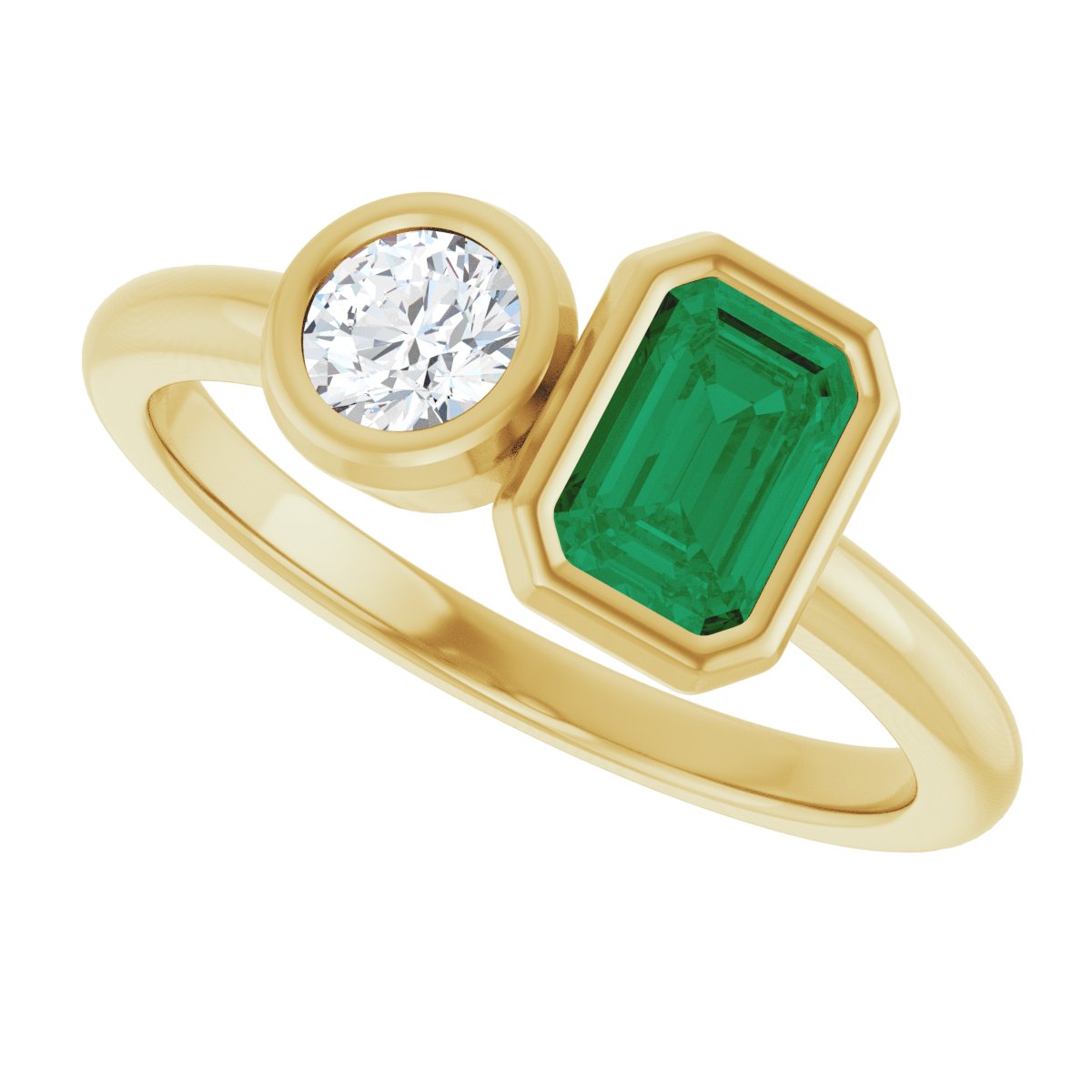 14K Yellow Lab-Grown Emerald & .06 CTW Lab-Grown Diamond Ring