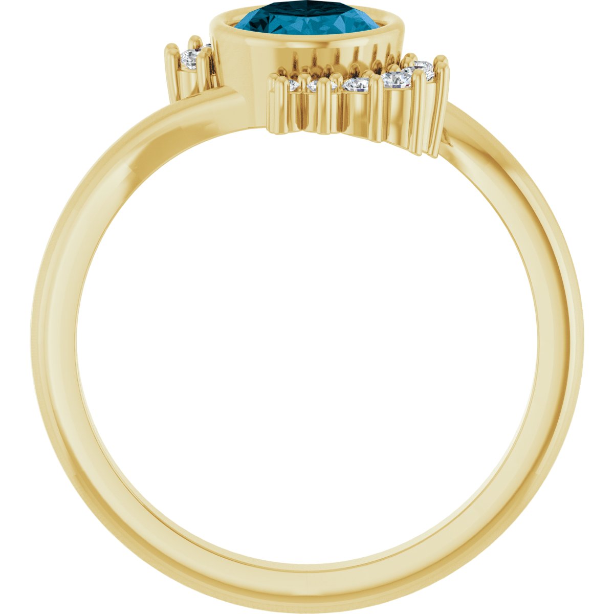 14K Yellow Natural London Blue Topaz & 1/8 CTW Natural Diamond Ring