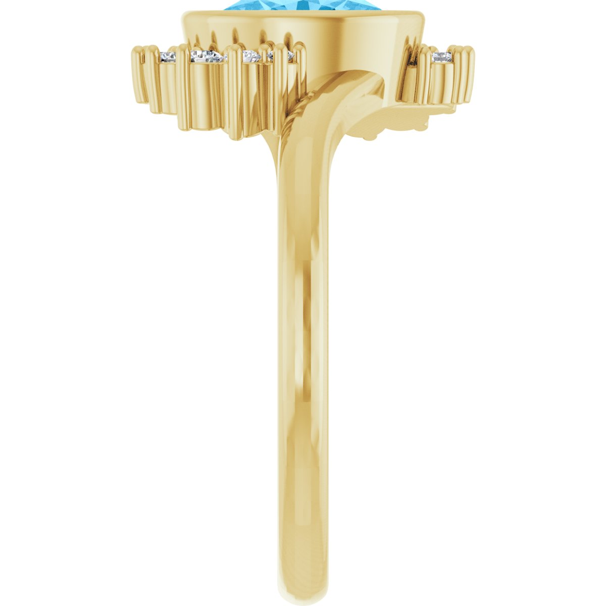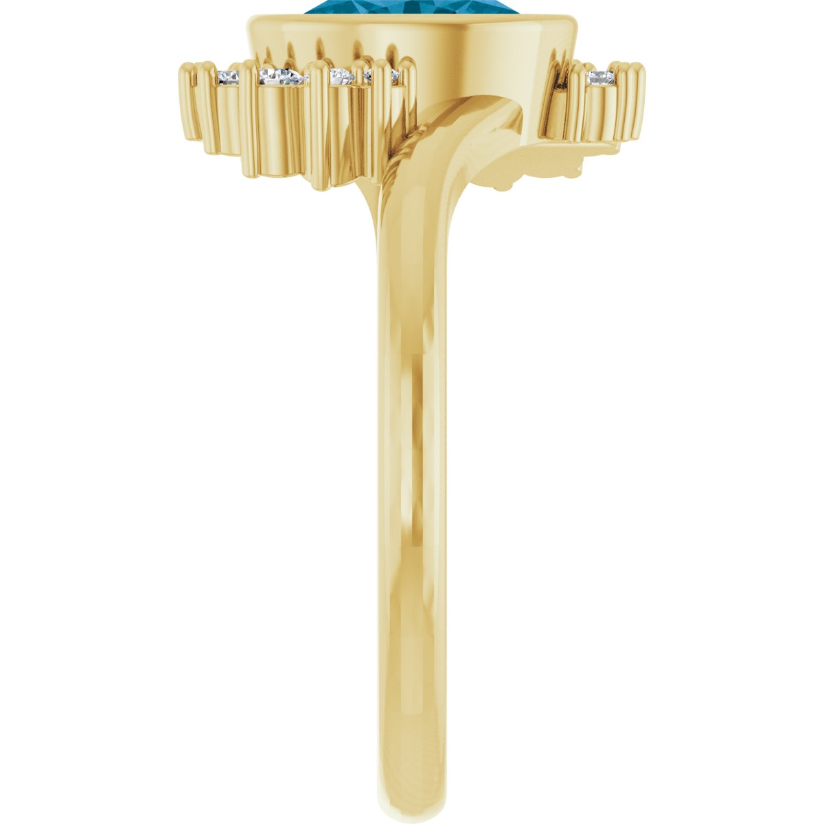 14K Yellow Natural Swiss Blue Topaz & 1/8 CTW Natural Diamond Ring