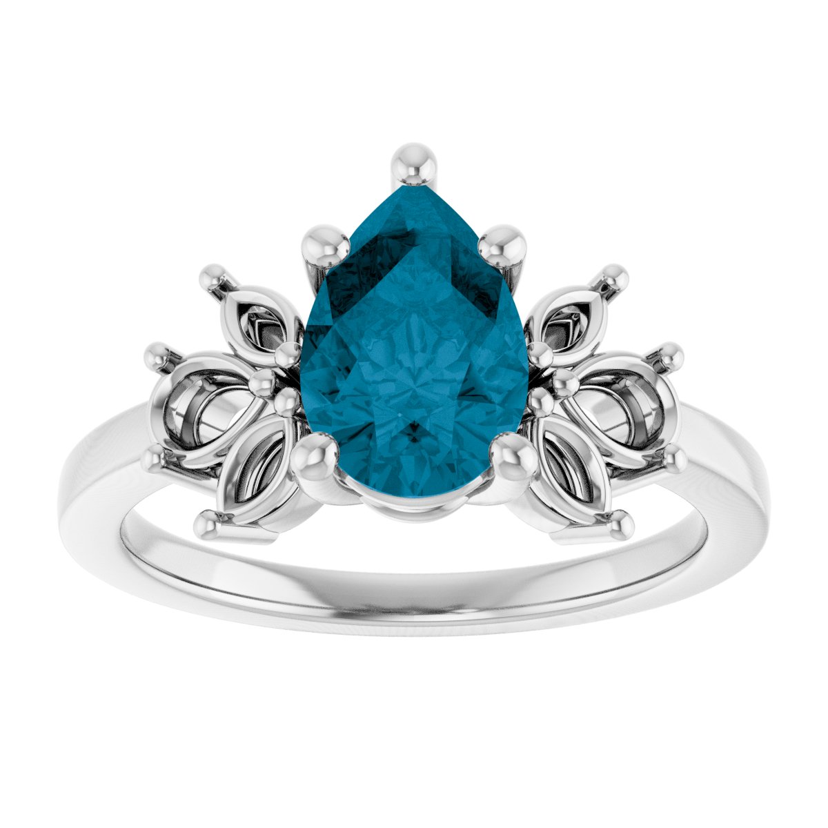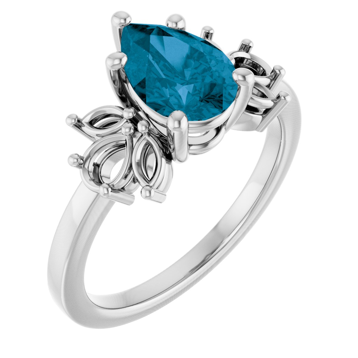 14K White 9x6 mm Pear Natural London Blue Topaz & 1/2 CTW Lab-Grown Diamond Ring